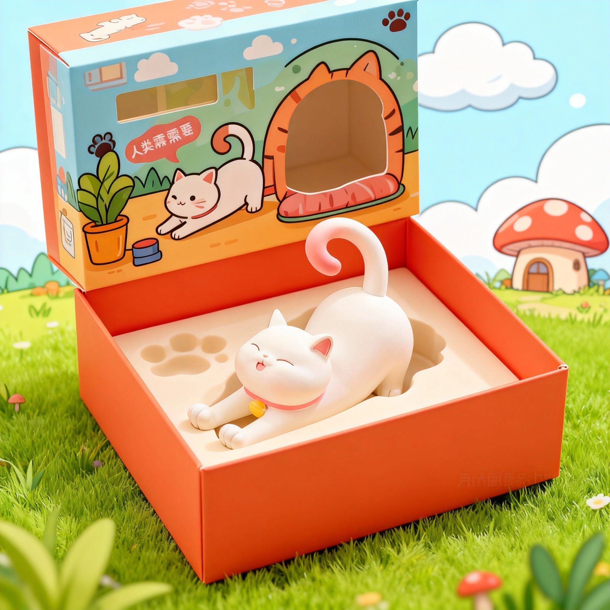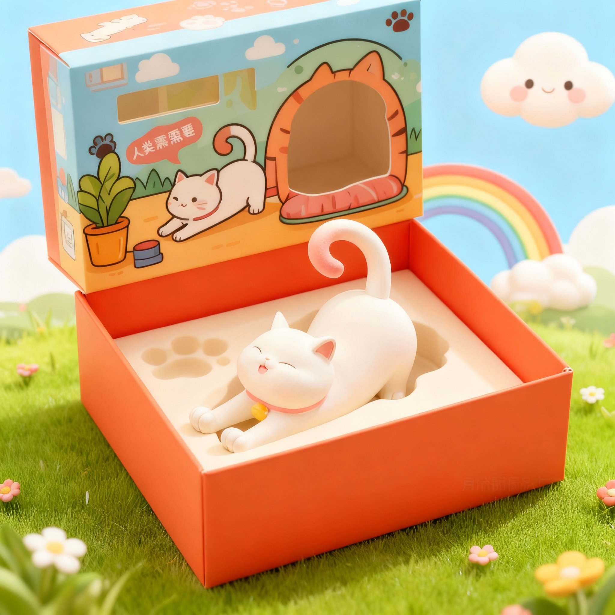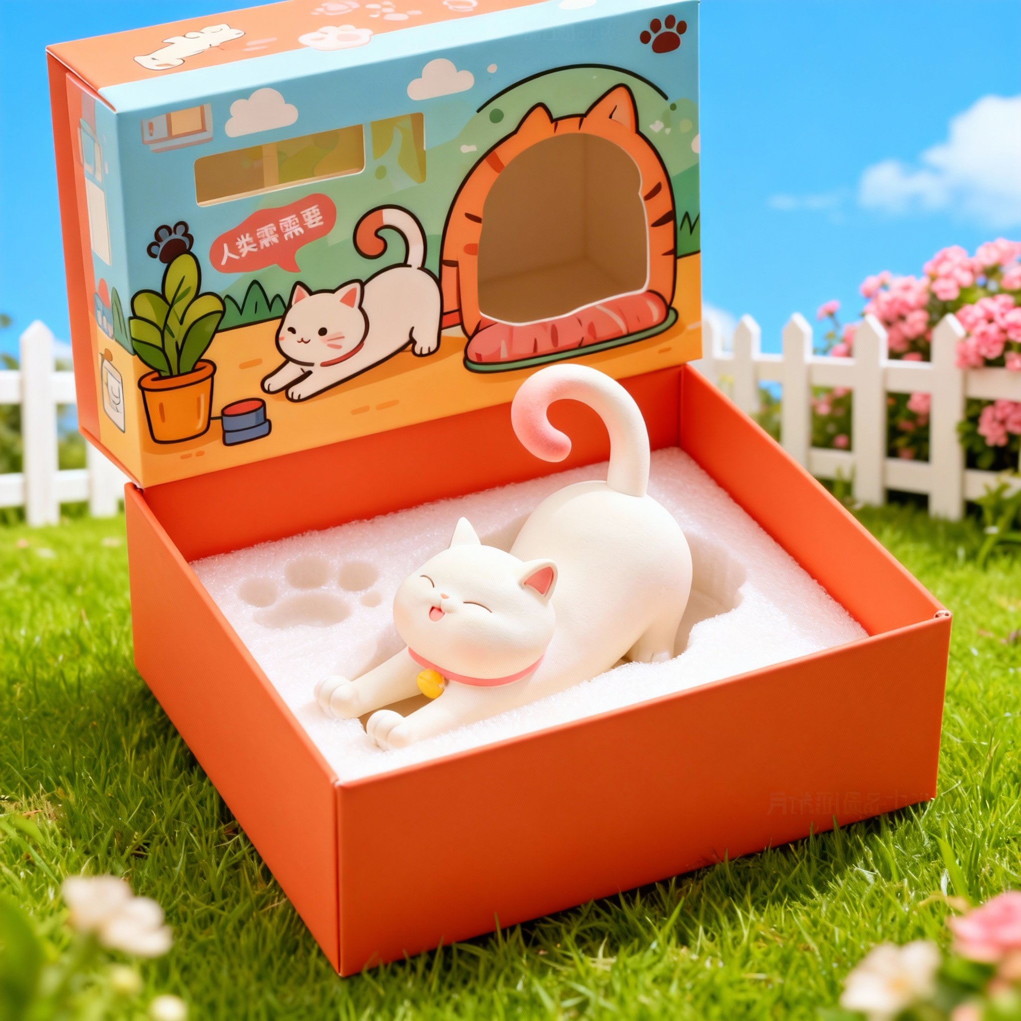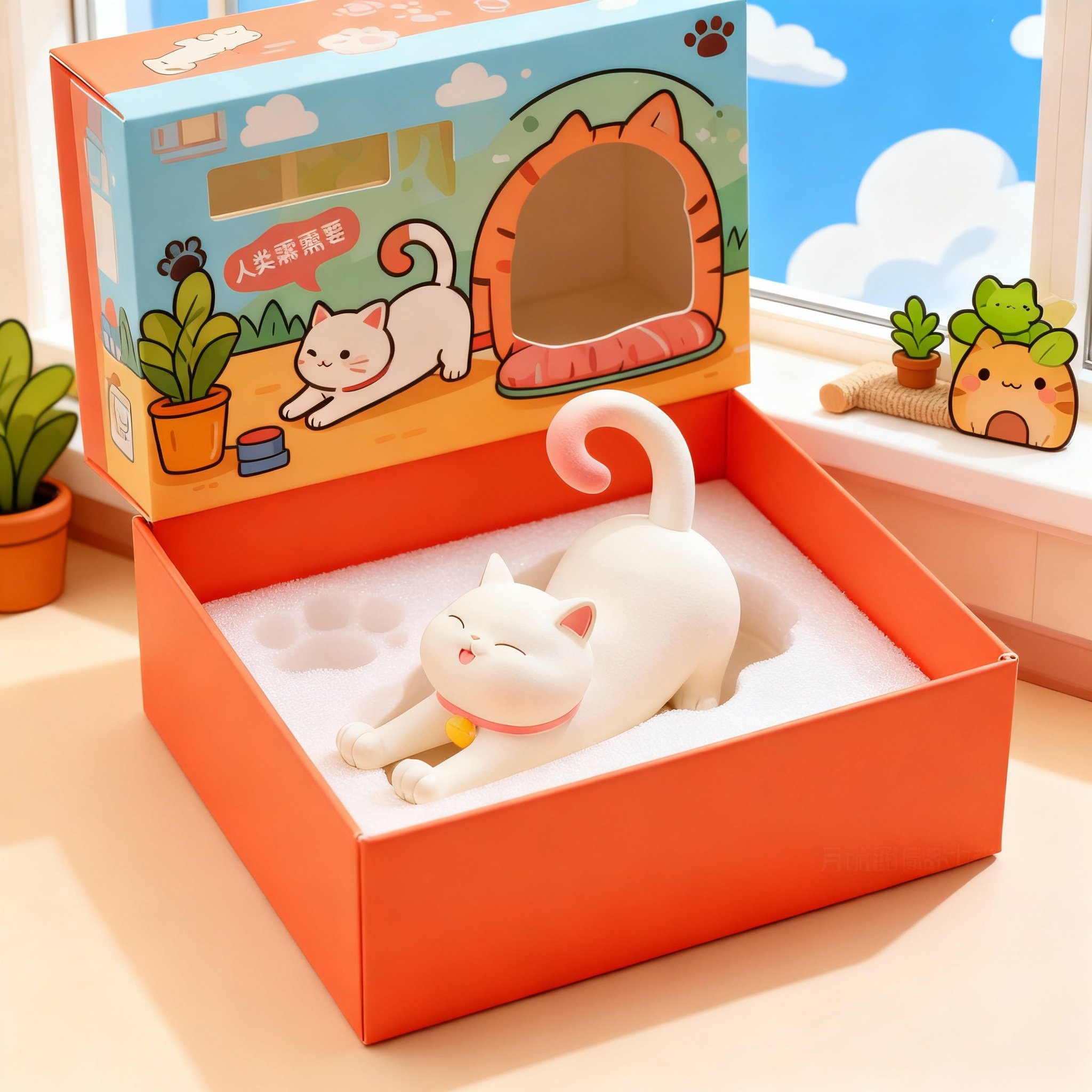 可爱卡通猫咪摆件白色萌宠装饰品桌面小摆件礼品盒装