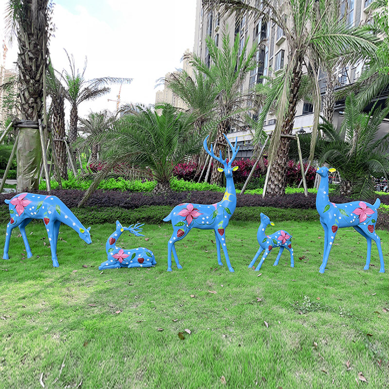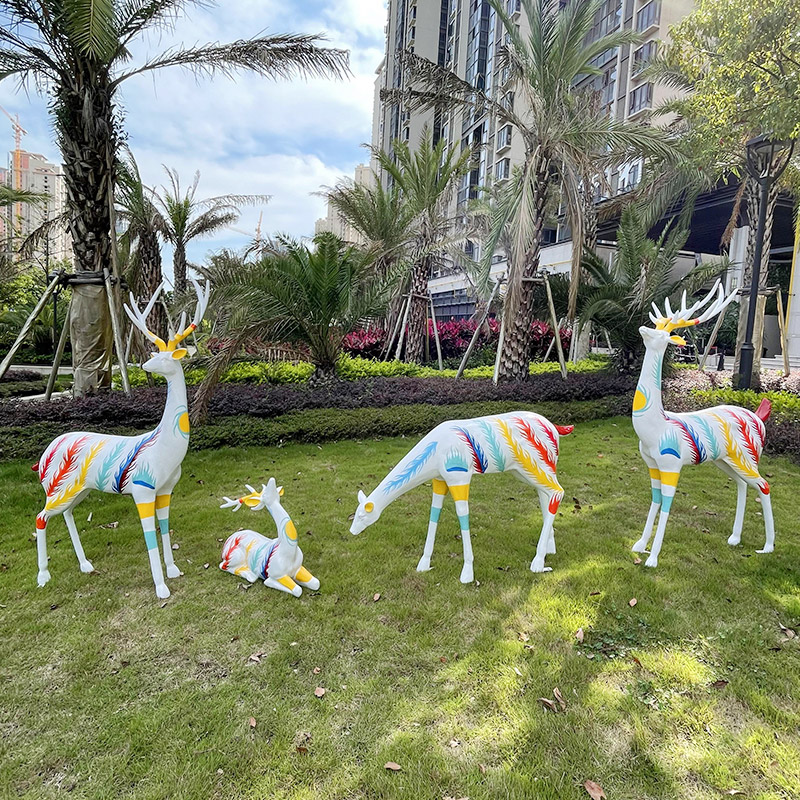 户外大型彷真鹿动物雕q塑抽象学校公园林景观装饰玻璃钢梅花鹿摆
