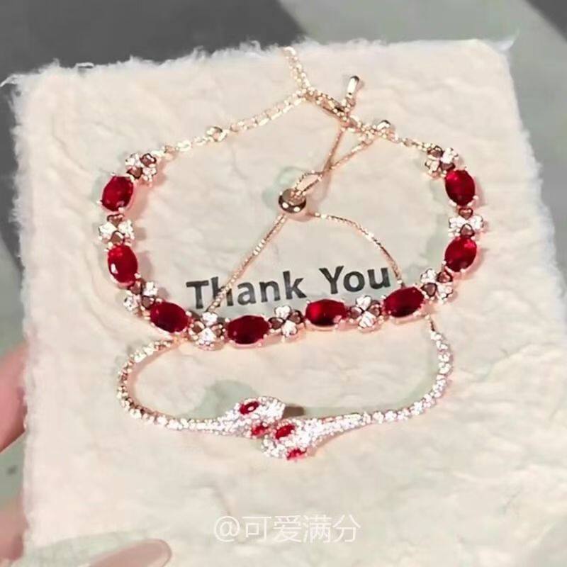 「镜中蔷薇」超闪红锆石手链新款高级感时尚百搭红色灵蛇新年手饰