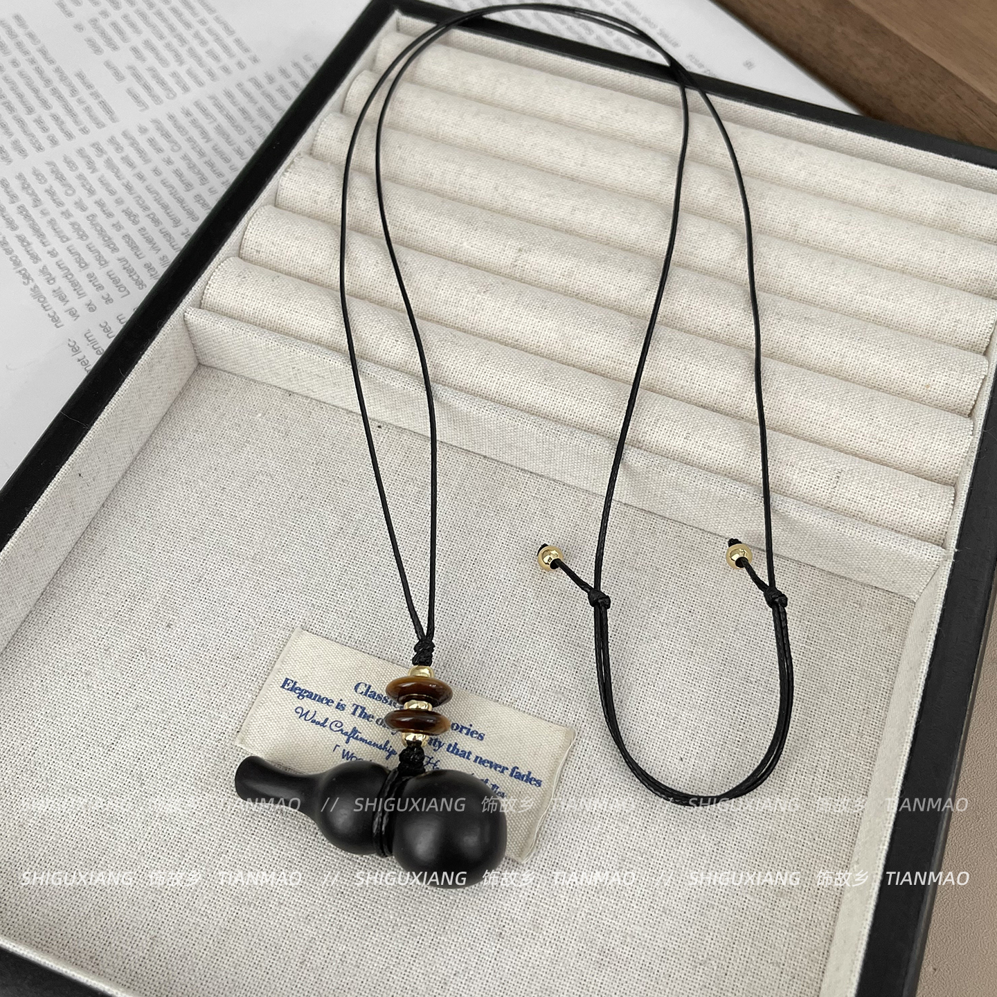 黑色葫芦项链女长款木质吊坠新中式毛衣链轻奢高级感秋冬挂脖配饰