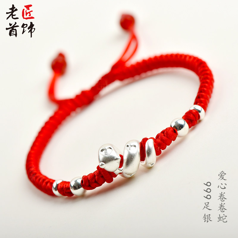 新马年本命年999足银十二生肖红绳手链编织纯银饰品男女转运礼物