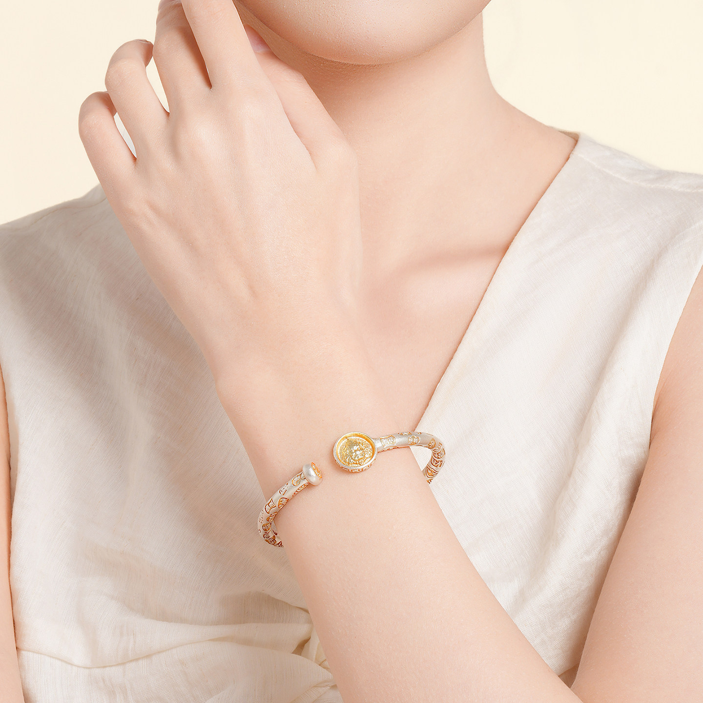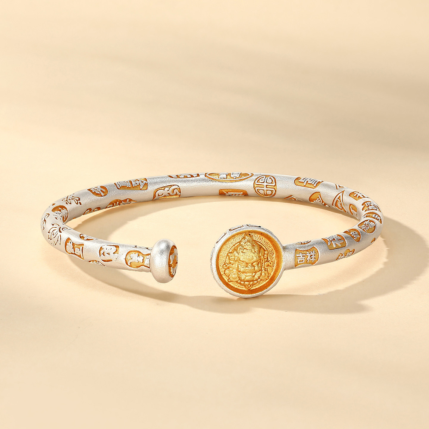 潮宏基锦时黄财神足银手镯银镯子开口镯银饰国风新中式礼物女