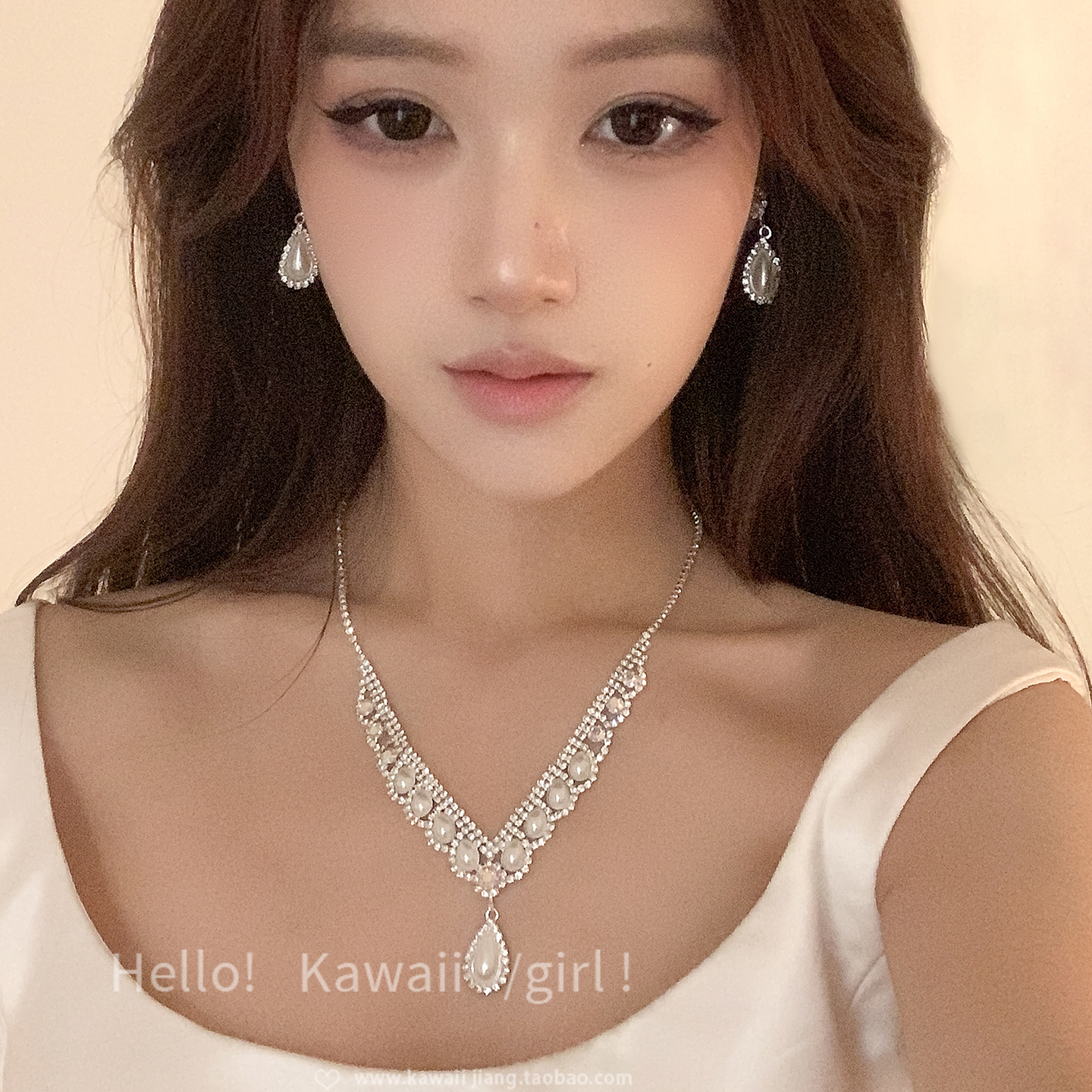 宫廷轻奢珍珠锆石闪钻项链女生日婚纱新娘高级感锁骨链晚礼服配饰