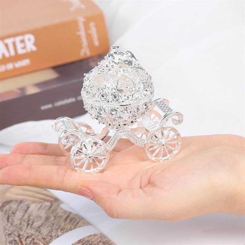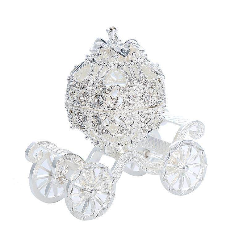欧式银白色南瓜车家居摆饰创意装饰品珐琅彩电镀金属工艺品摆件
