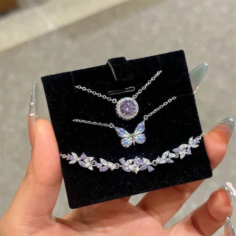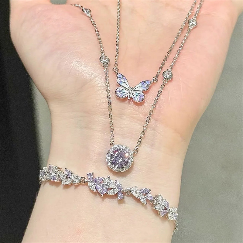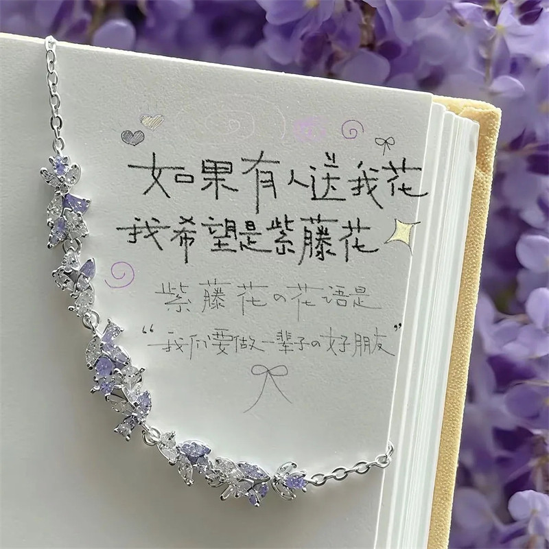 紫藤花三件套项链手链紫色灵动蝴蝶轻奢设计高级感手链送对象闺蜜