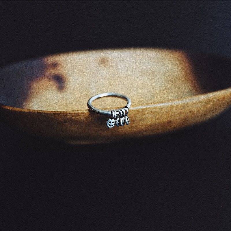 「你笑起来像好天气」Anywhere笑脸925纯银戒指尾戒ins百搭礼物