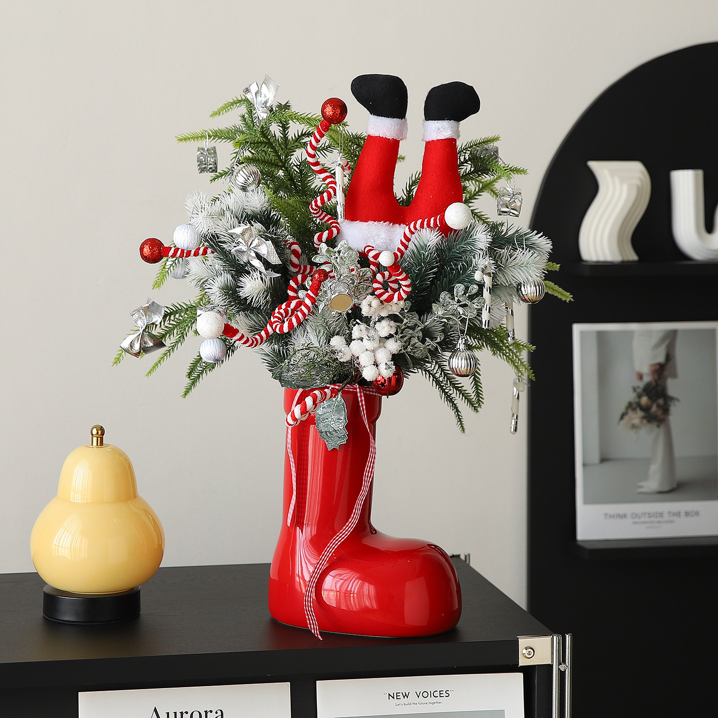 圣诞节日红靴子圣诞树桌面摆件高级感小众客厅家居电视餐边柜装饰