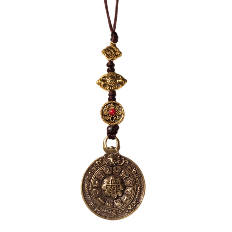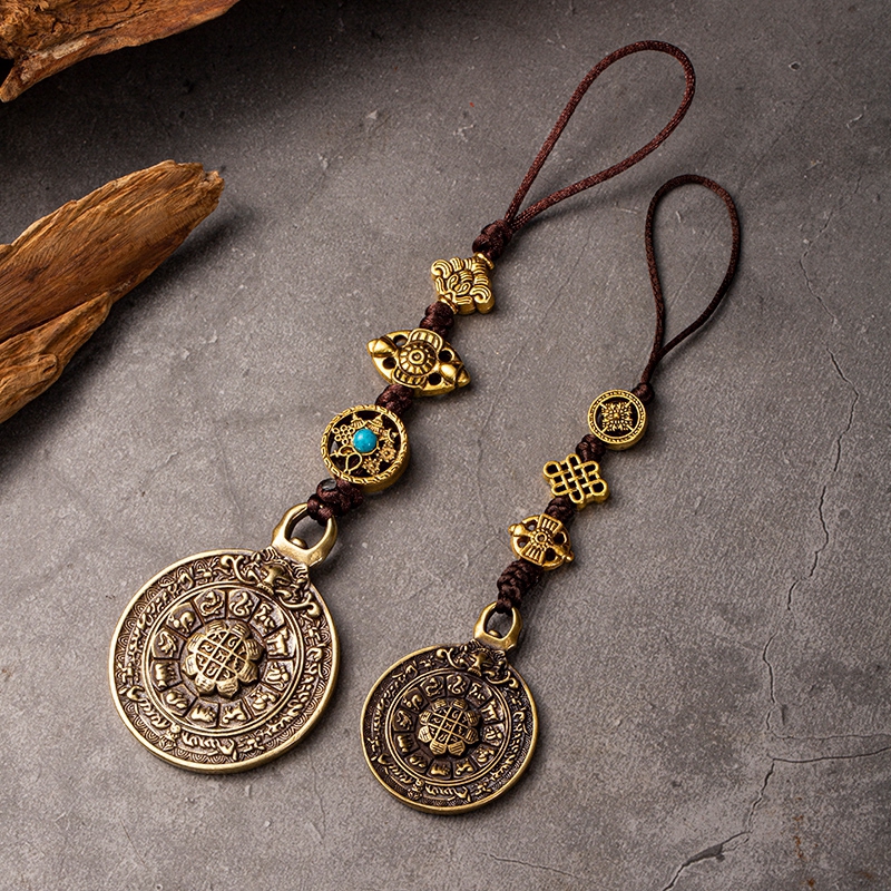 文殊九宫八卦牌纯铜腰牌吊坠钥匙扣十二生肖民族风挂件西藏纪念品