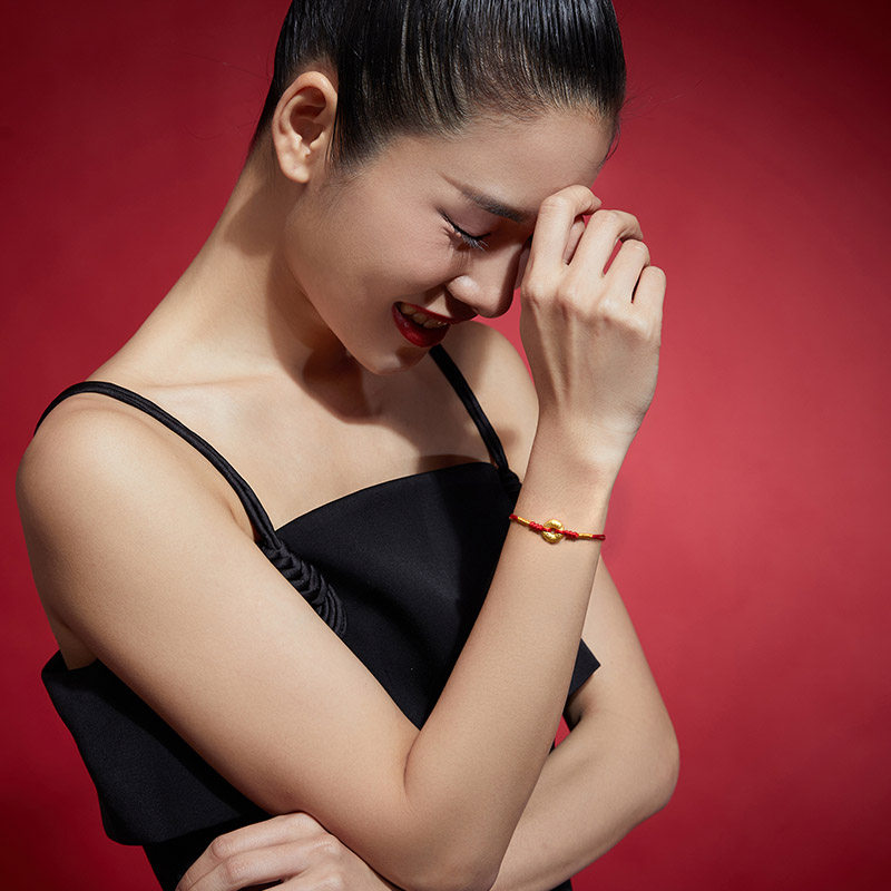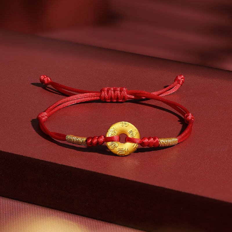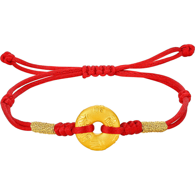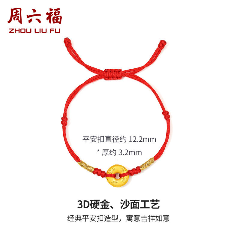 周六福黄金手绳编织绳平安扣手链本命年足金红绳定价女款圣诞礼物