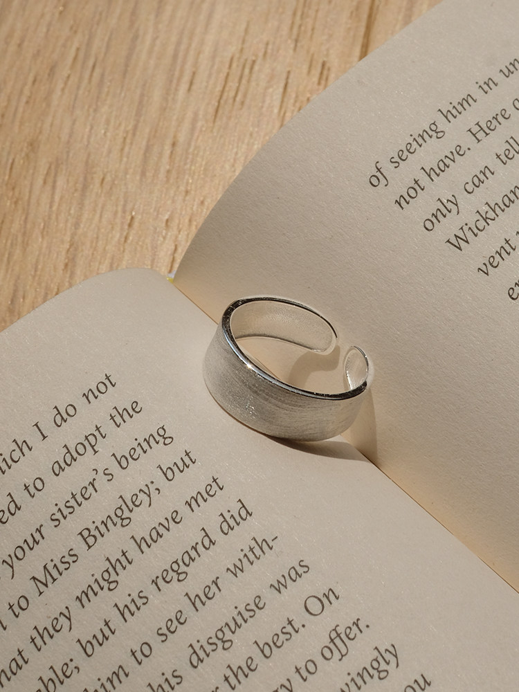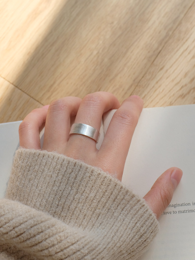925纯银拉丝光圈戒指女冷淡风时尚简约百搭ins潮日韩个性开口指环