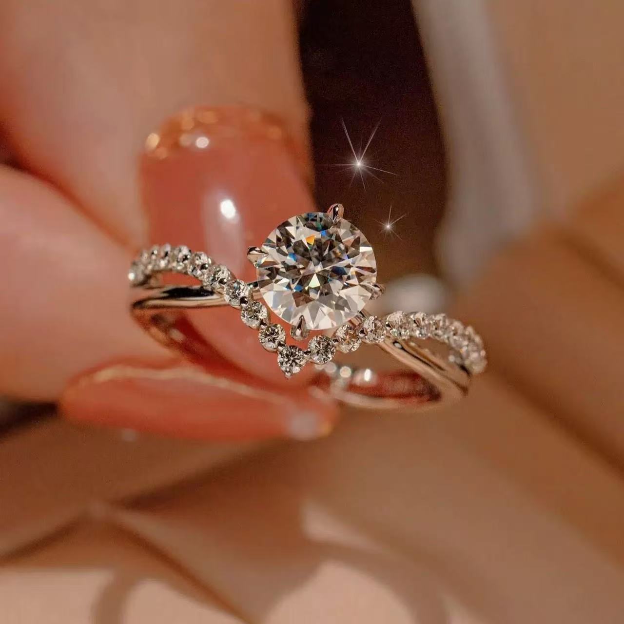 莫桑石为爱加冕钻戒仿真钻石戒指女戒结婚订婚钻戒七夕送女友礼物