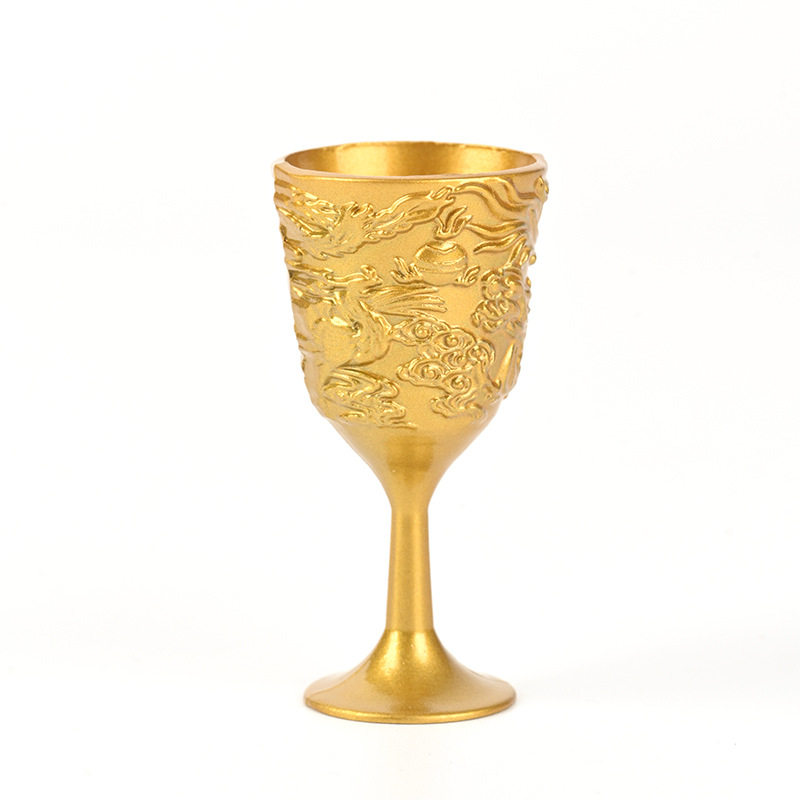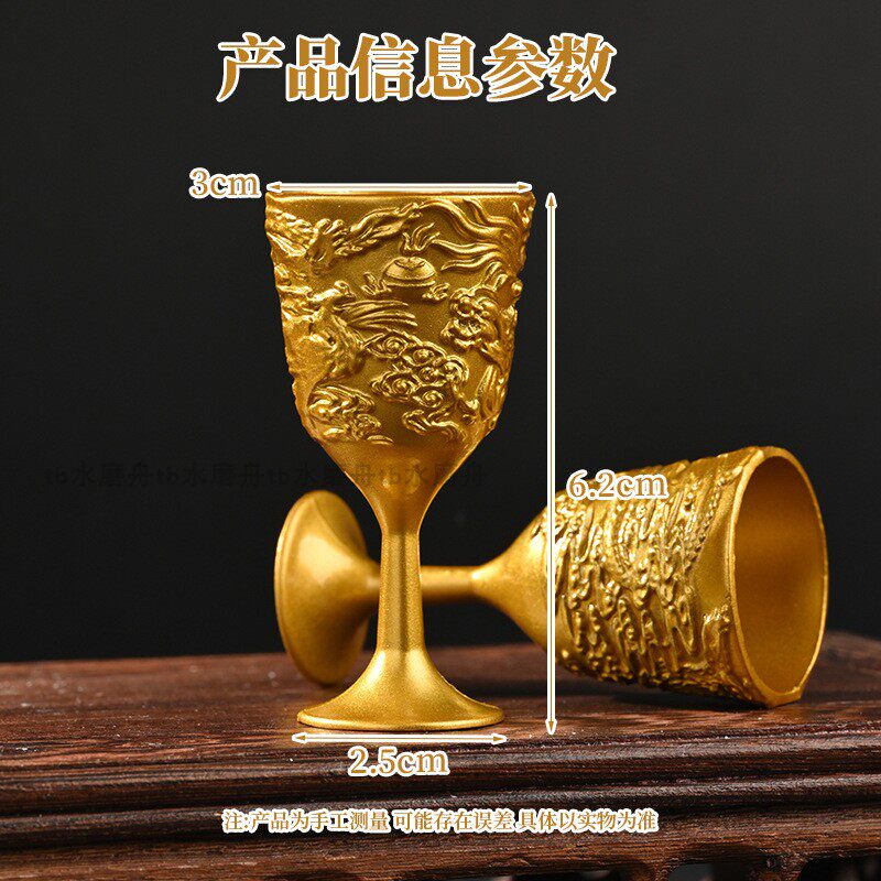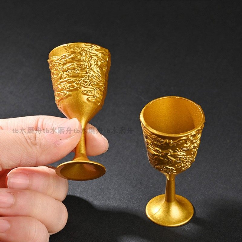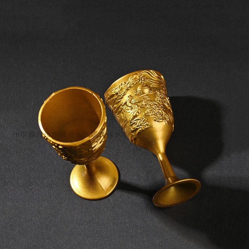 合金浮雕龙凤酒杯工艺品老式小酒盅高脚白酒杯客厅婚房装饰品摆件