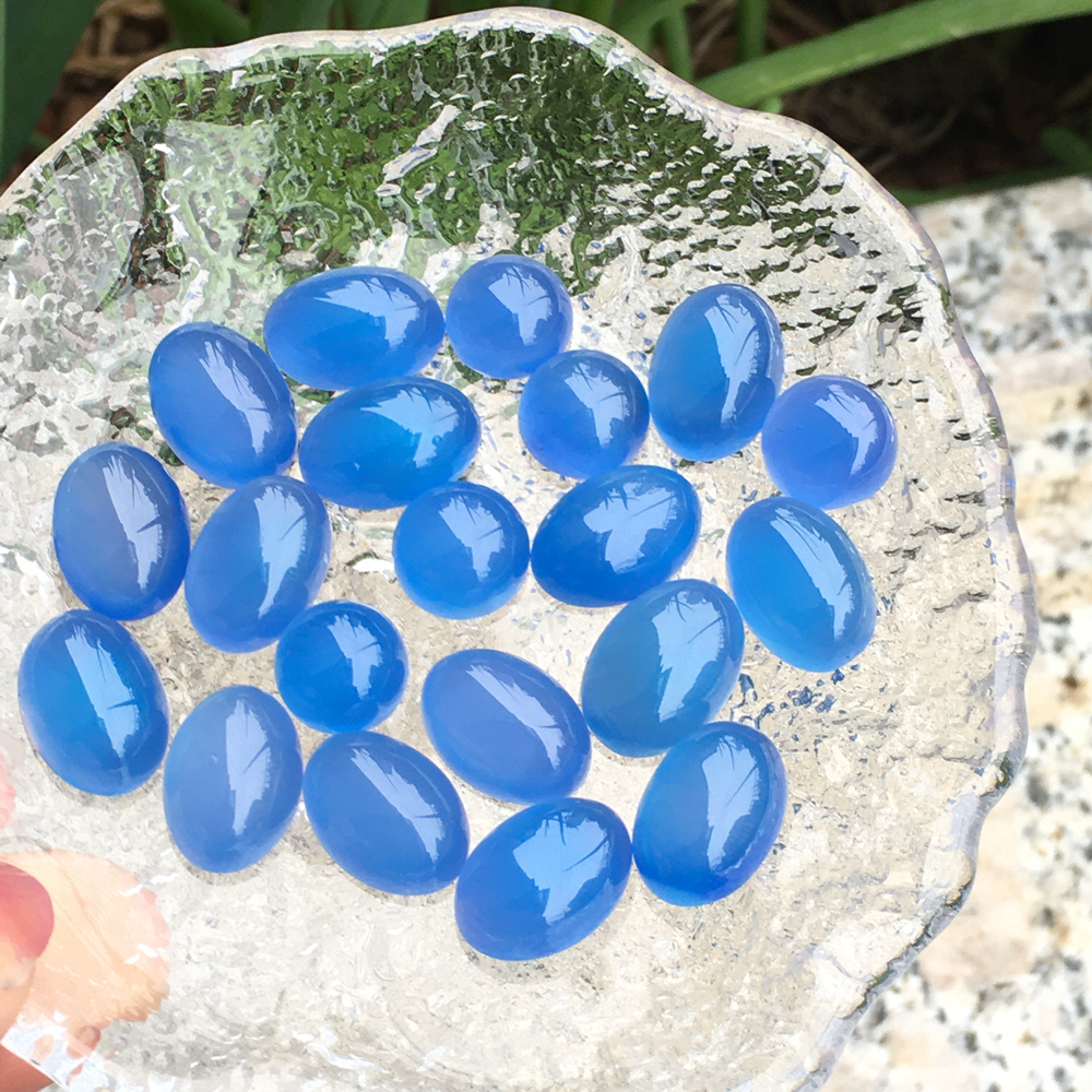 天然蓝玉髓裸石戒面原石蛋面镶嵌戒指吊坠耳钉手链玛瑙圆形椭圆