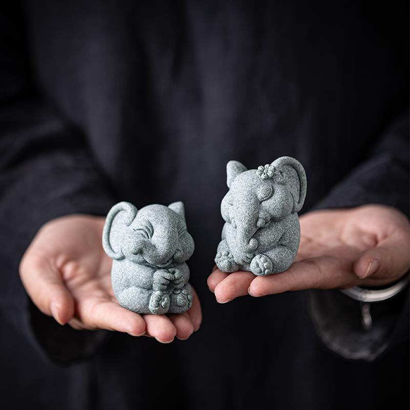 可爱大象一对茶宠茶玩摆件创意情侣吉象鱼缸盆栽造景客厅桌面装饰