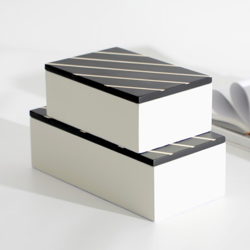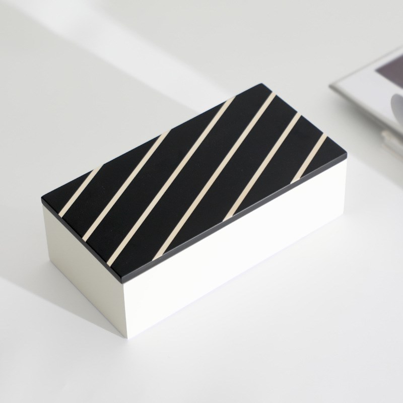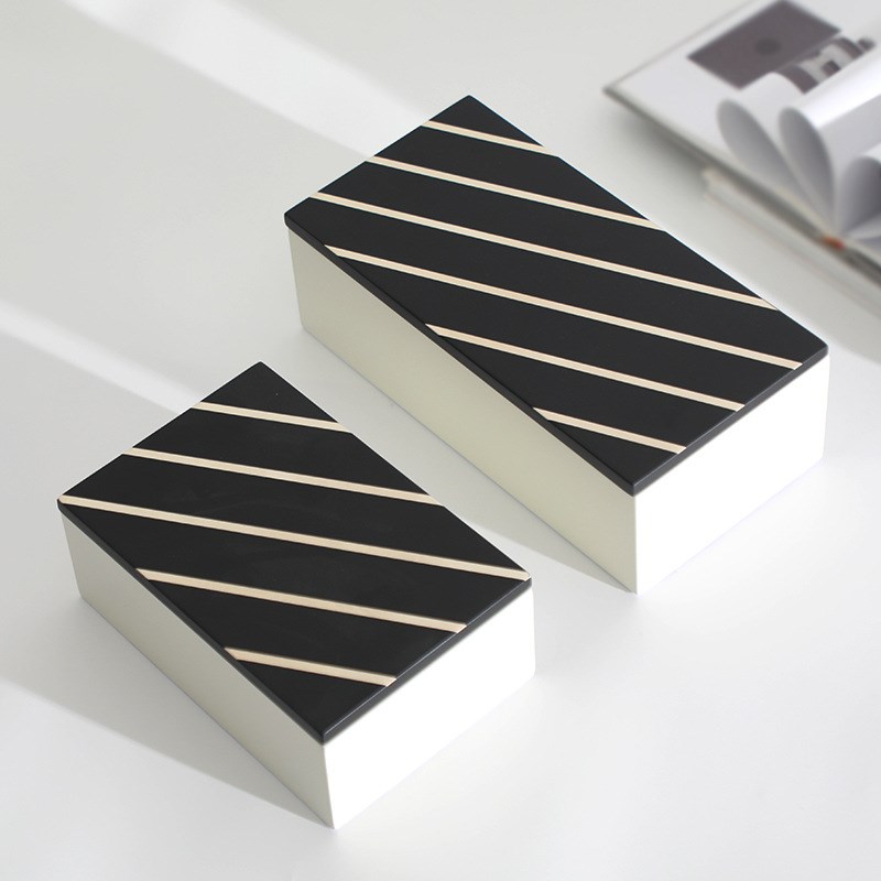 北欧现代轻e奢木质创意首饰盒装饰摆件样板房卧室黑色纹理收纳摆