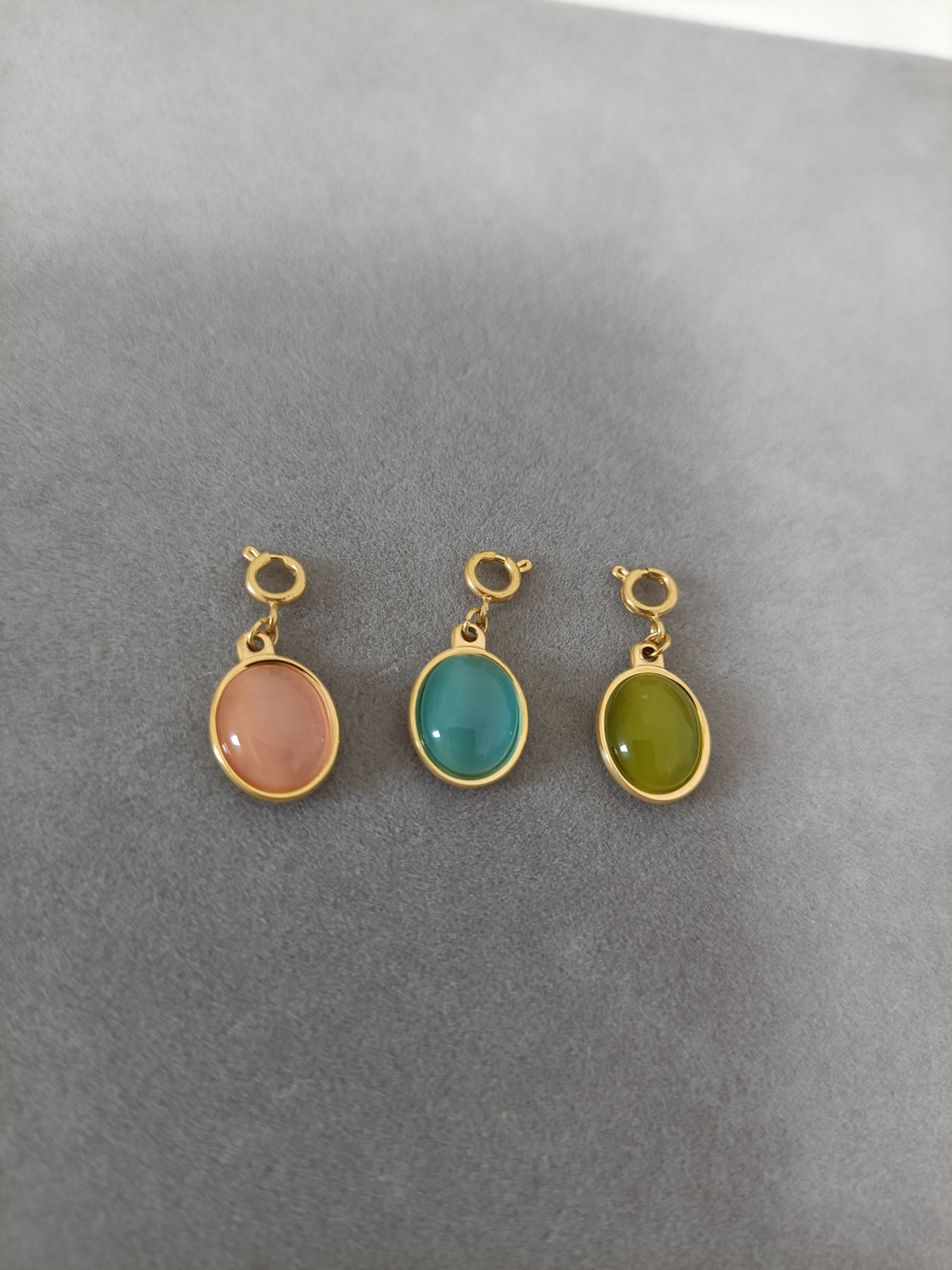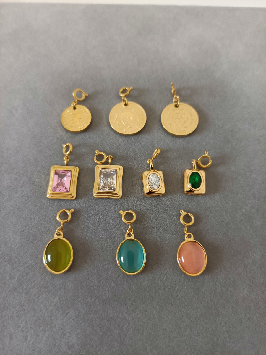 手作钛钢镀18K金万能扣祖母绿锆石吊坠小王子小公主吊坠防过敏潮