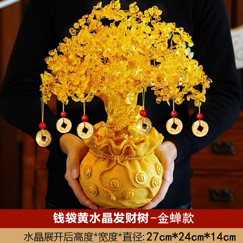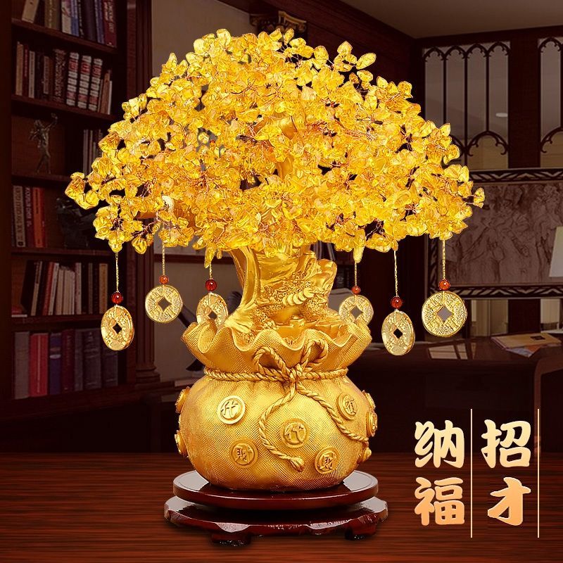 水晶发财树招财摆件高档家居装A饰客厅电视柜元宝小摇钱树开业礼