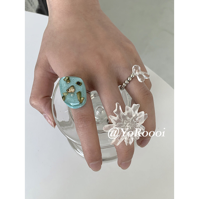 YoRoooi 自制夏日ins设计感开口蓝色碎岩戒指透明弹力指环配饰女