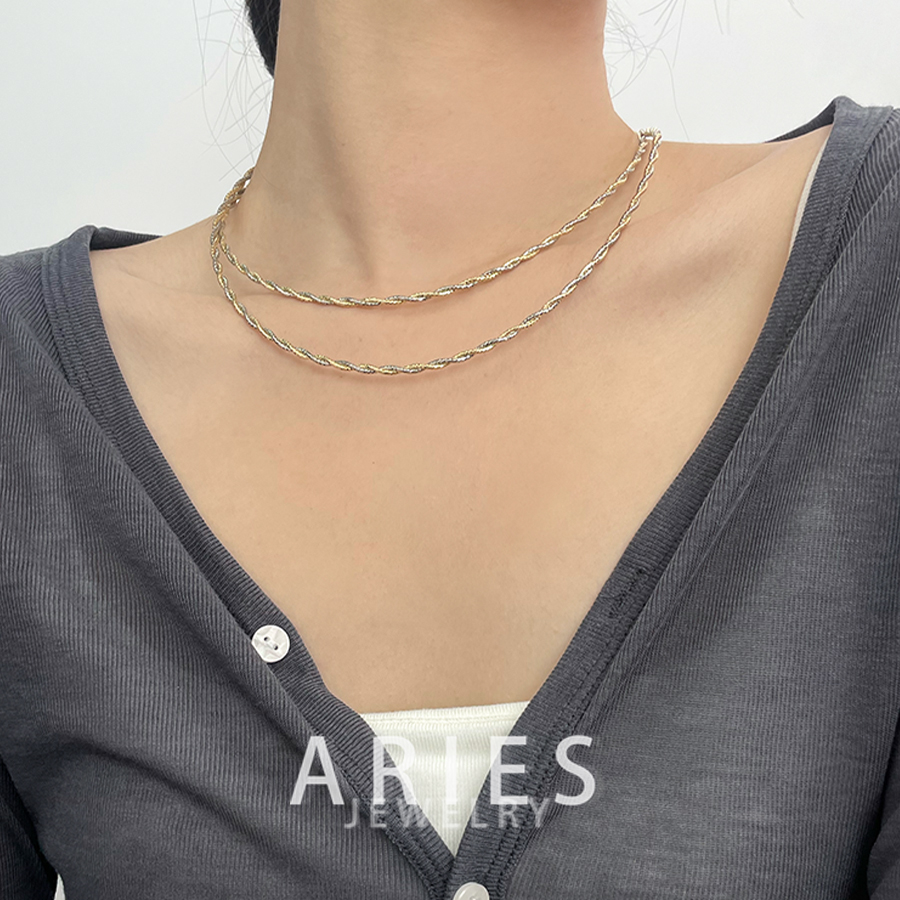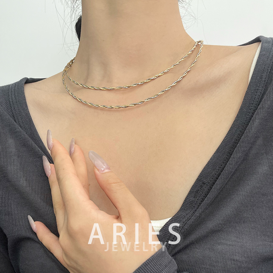 Aries 意大利纯银黄金双色麻花项链S925小众百搭欧美高级感项圈