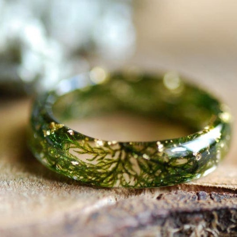 天然水草树脂戒指冰种飘花玉髓指环尾戒复古精品树脂苔藓男女戒指