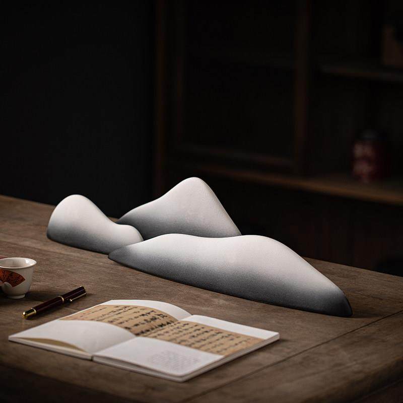 水墨风陶瓷假山摆件鱼缸微景观造景中式禅意枯山水玄关桌面装饰品