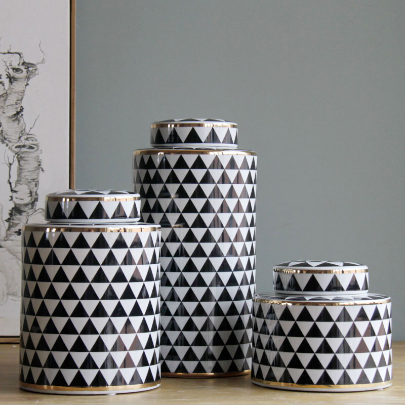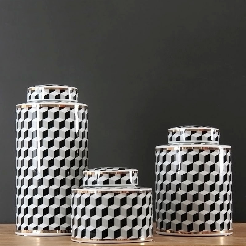 陶瓷器玄关收纳描金家居创意欧式圆罐摆件家装家饰装饰饰品