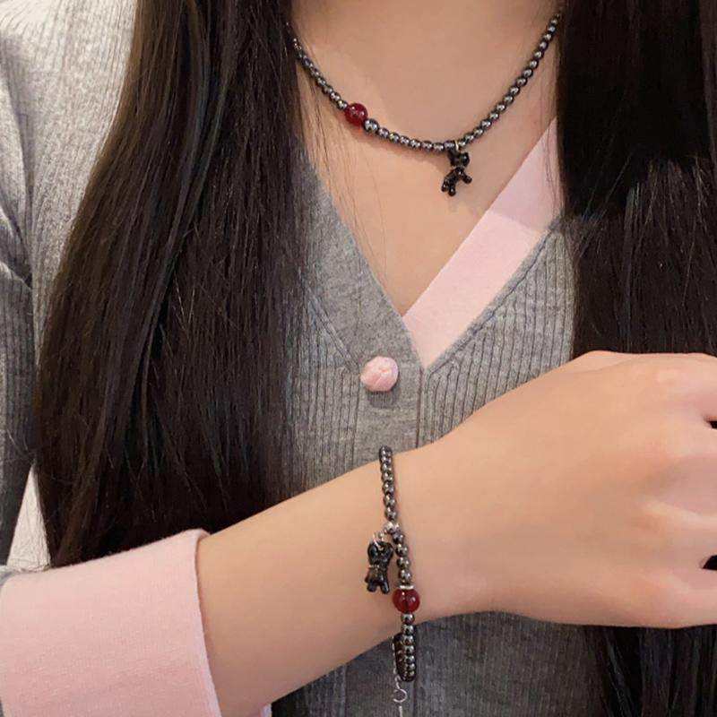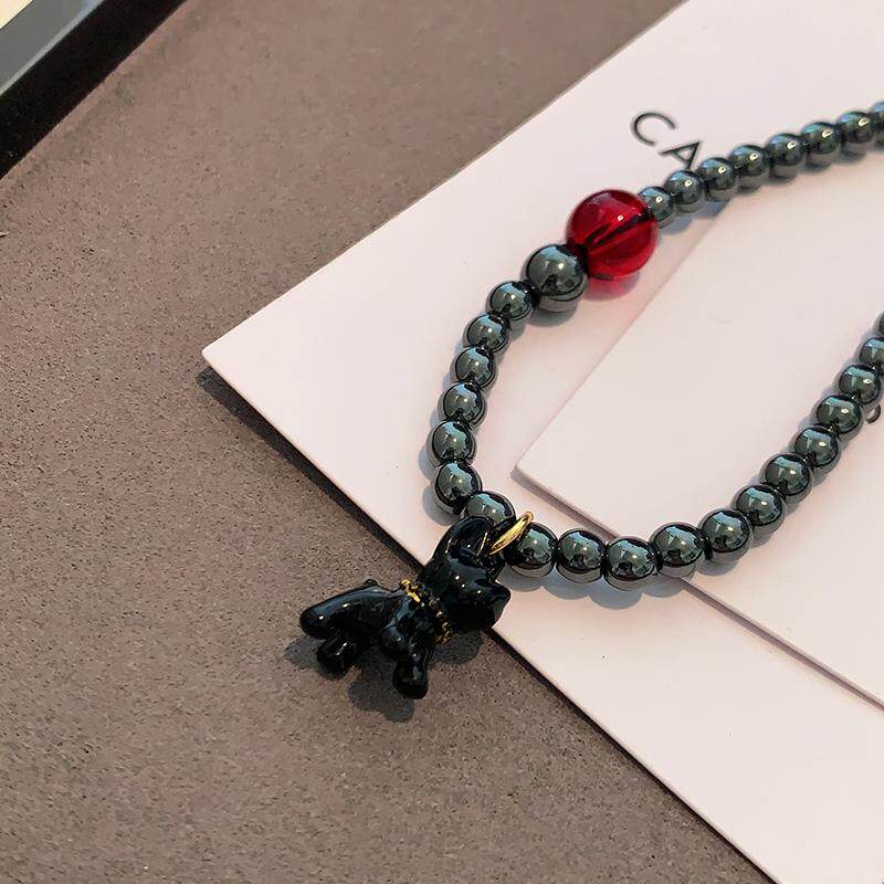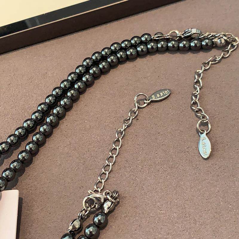 黑色S家珍珠项链高级感轻奢小众朋克珐琅小狗毛衣链欧美风锁骨链