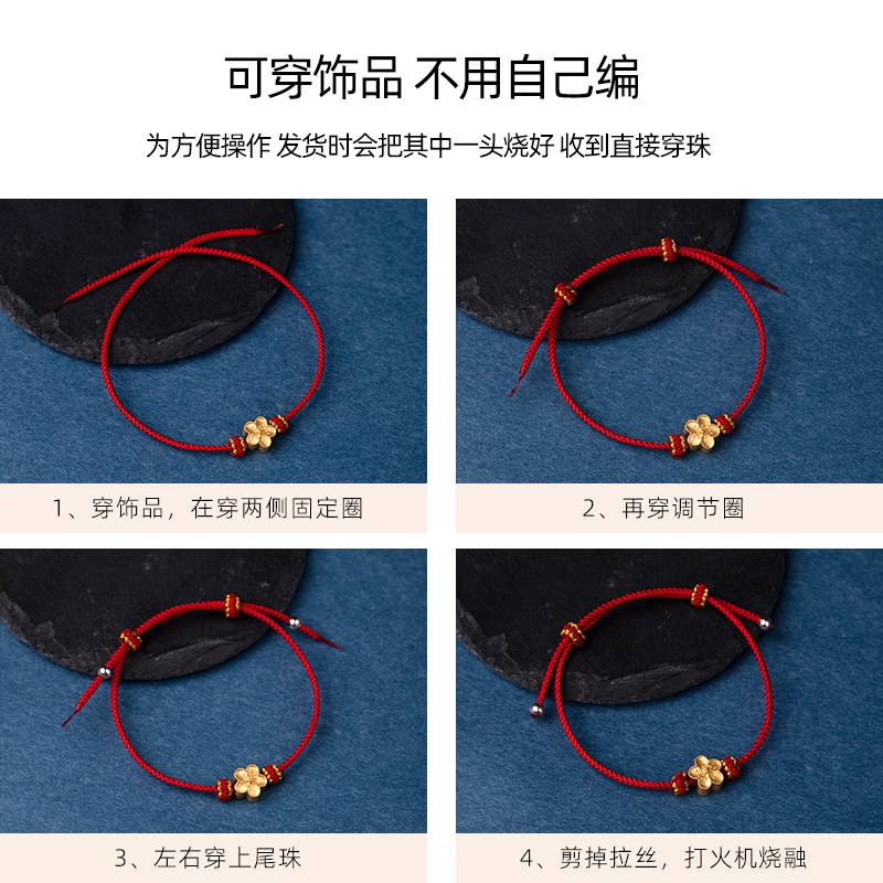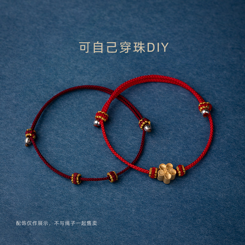 本命年手绳女半成品可穿珠diy手工编织吊坠金饰转运珠男红绳手链