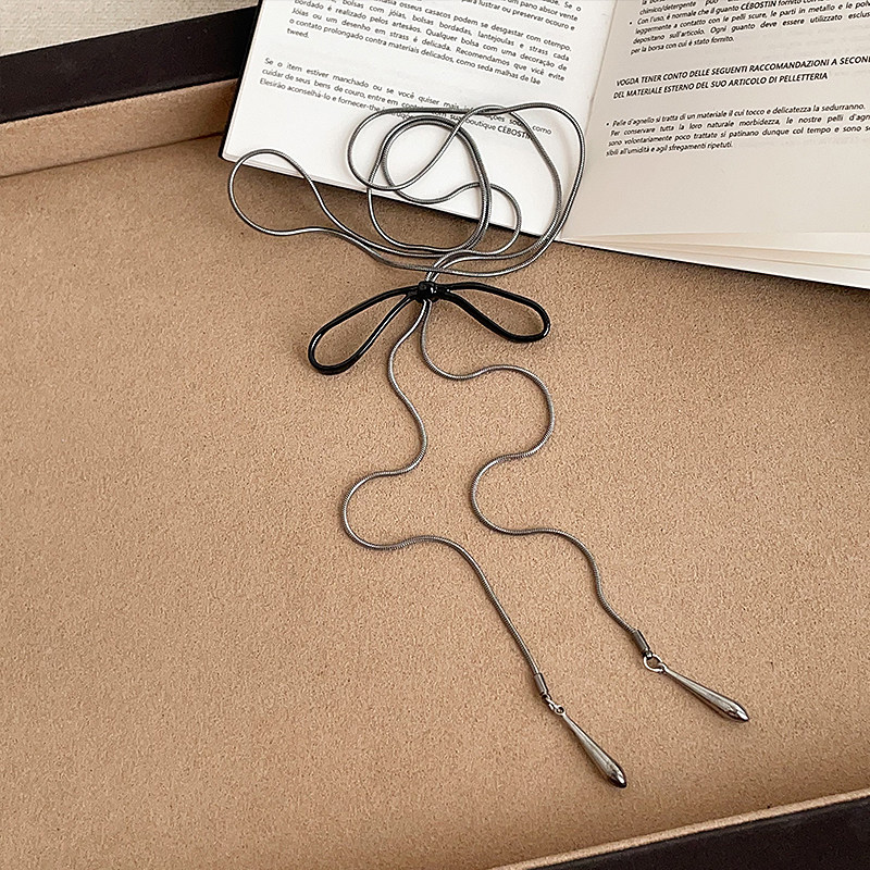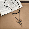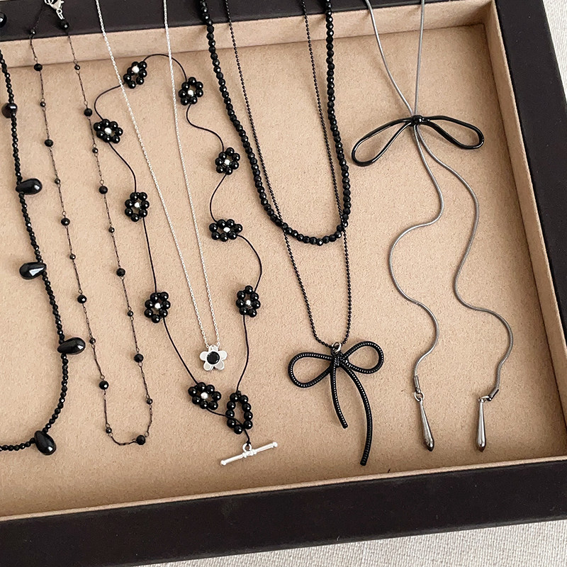 简约ins冷淡风蝴蝶结花朵黑色水晶项链女气质时尚潮流颈链锁骨链