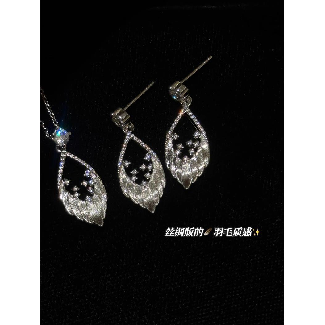 "丝光羽翼"两件套超闪拉丝羽毛项链女高级感轻奢小众新中式锁骨链