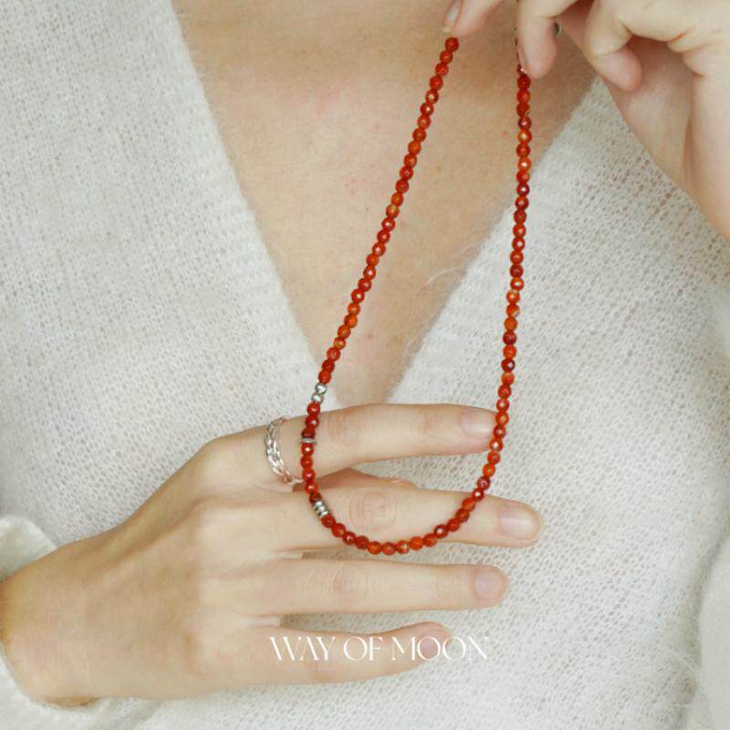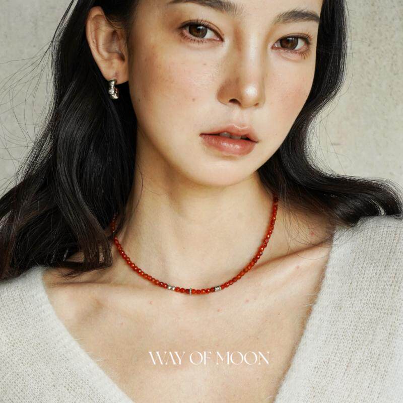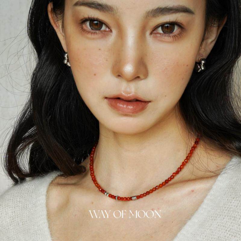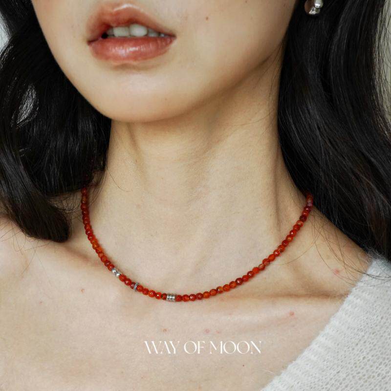 WAY OF MOON原创本命复古瑚红色天然玛瑙串珠项链细款叠戴锁骨链