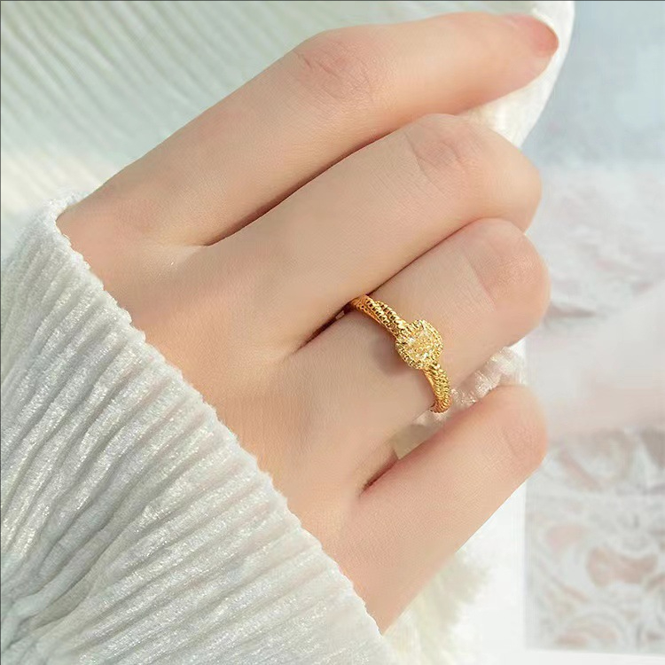 小红书同款小方糖黄钻戒指女纯银镀18K金黄水晶宝石活口麻花指戒