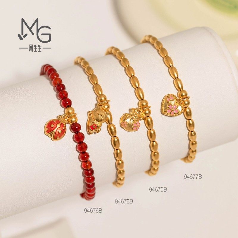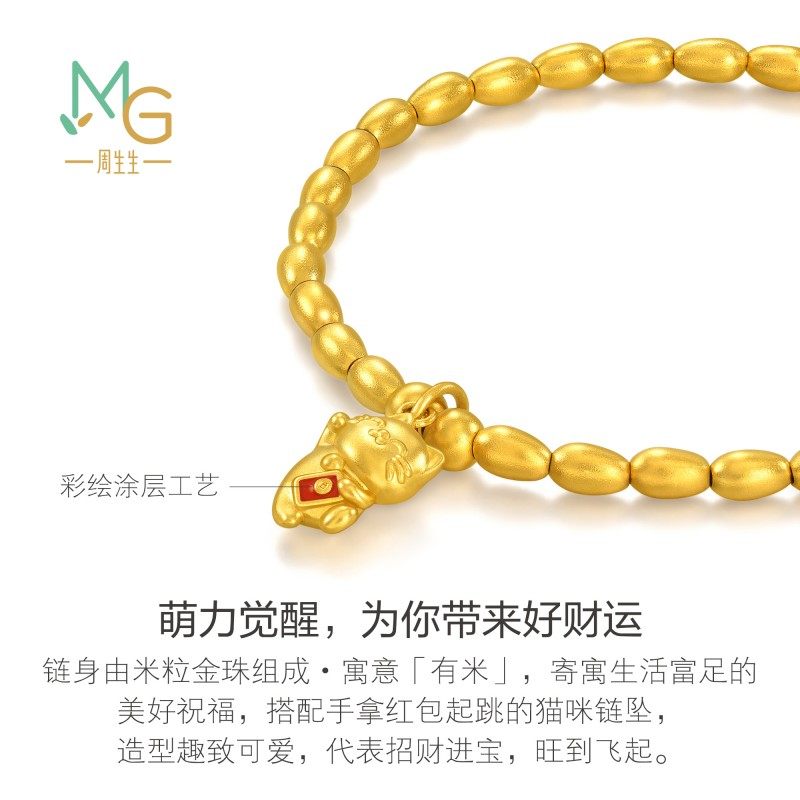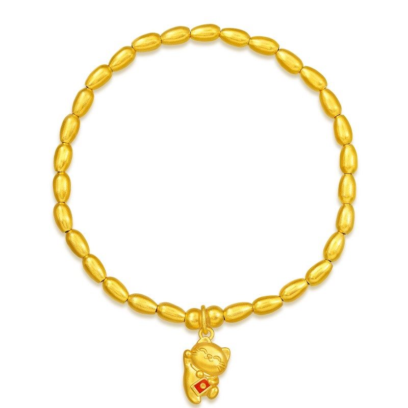 周生生官方正品黄金足金微糖系列米珠招财猫咪手链珠串手串94678B