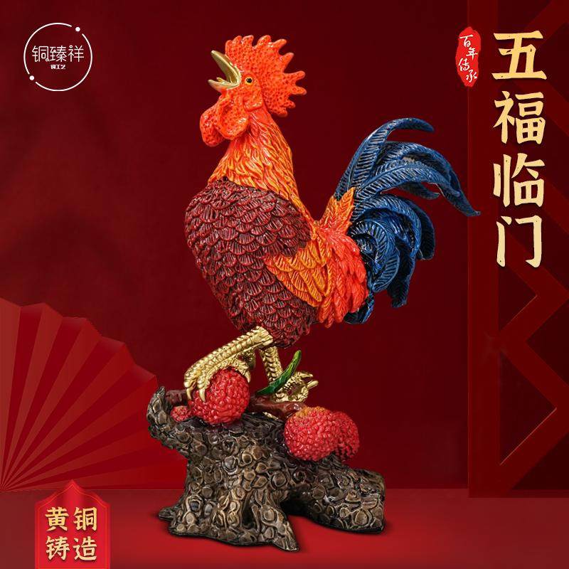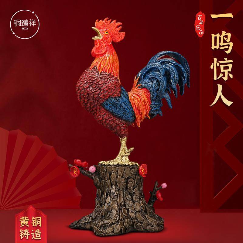 大吉大利黄铜公鸡摆件新中式家居客厅办公室生肖金鸡报喜乔迁开业