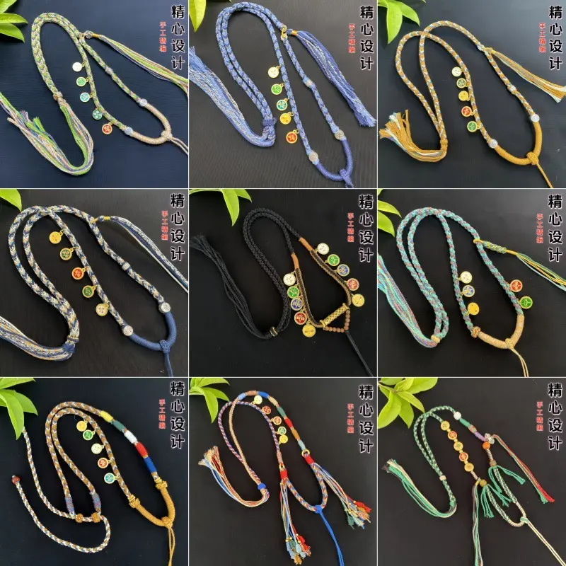 藏式手工编织项链绳蜜蜡佛牌唐卡和田玉翡翠吊坠挂绳可调节挂坠绳