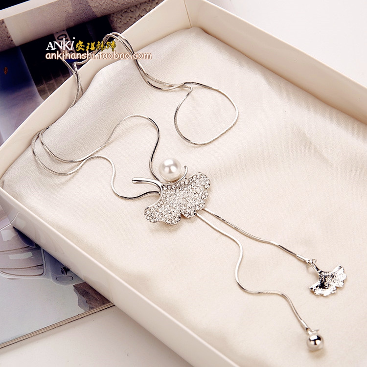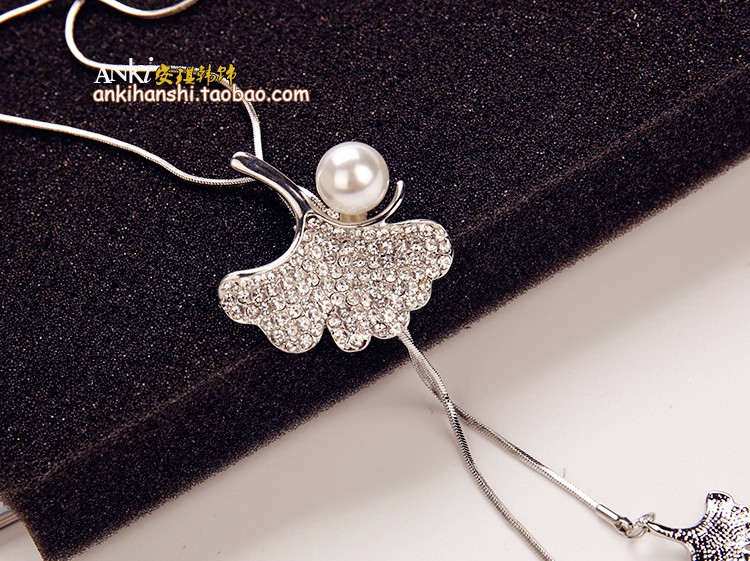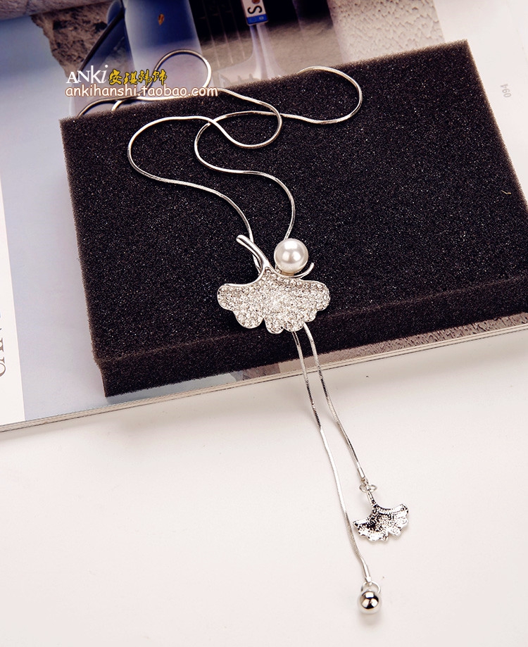 毛衣链女长款韩版时尚百搭水晶满钻挂链气质杏叶流苏装饰项链配饰