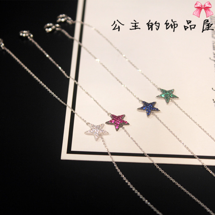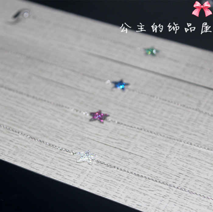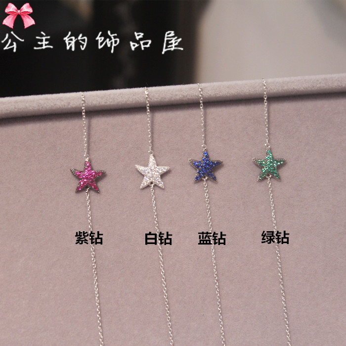 古丽 气质镶锆石五角星海星 925银 特细链子 手链