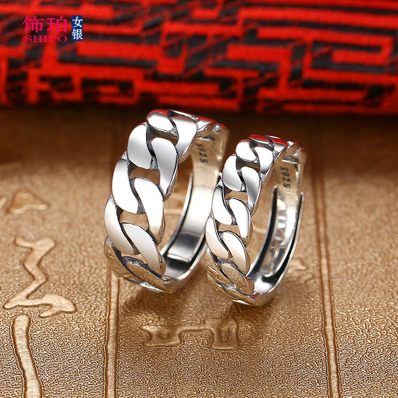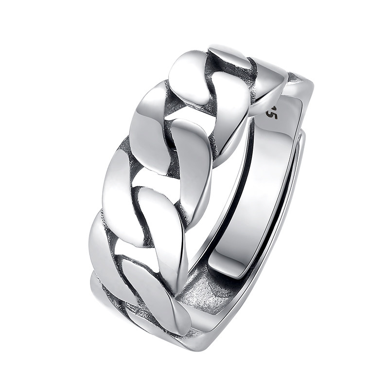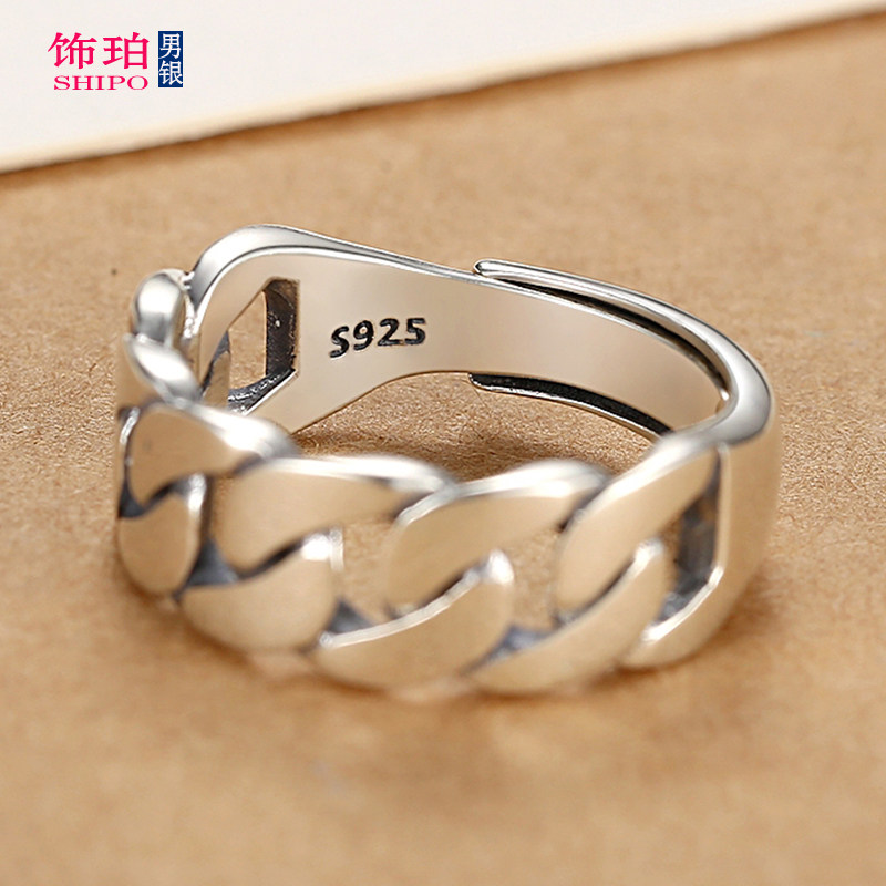 s925银戒指开口戒子女链条设计男士时尚个性单身纯银指环活口食指