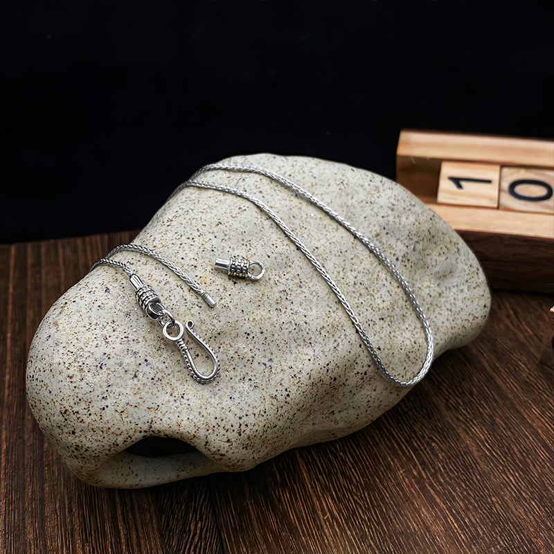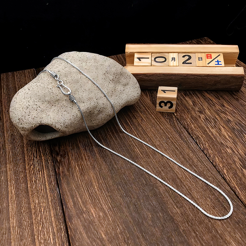 新款1.5毫米h细项链纯银螺丝扣男女可戴吊坠百搭链子潮男个性韩版