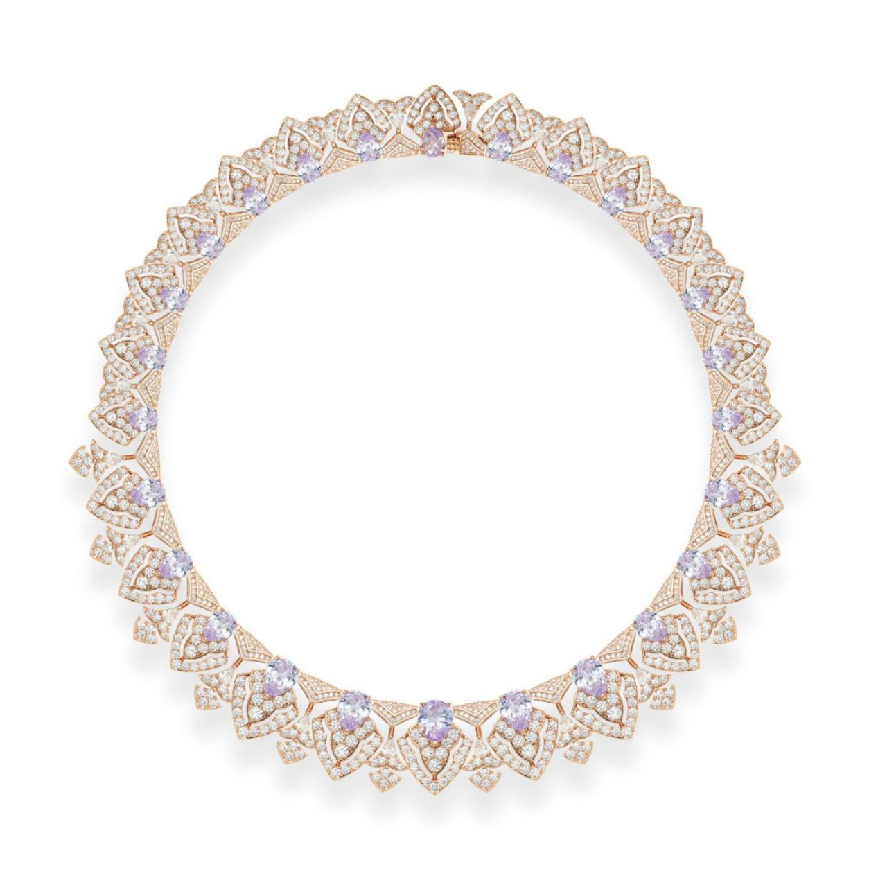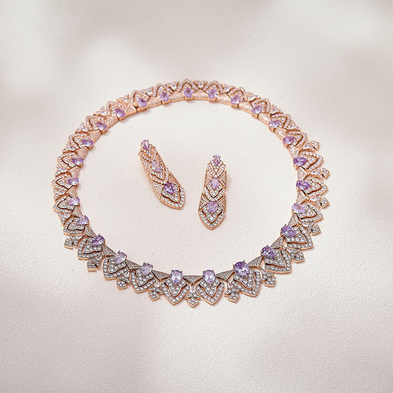 紫色菱形晚装晚宴礼服新娘项链女镂空花纹超闪轻奢choker锁骨链女