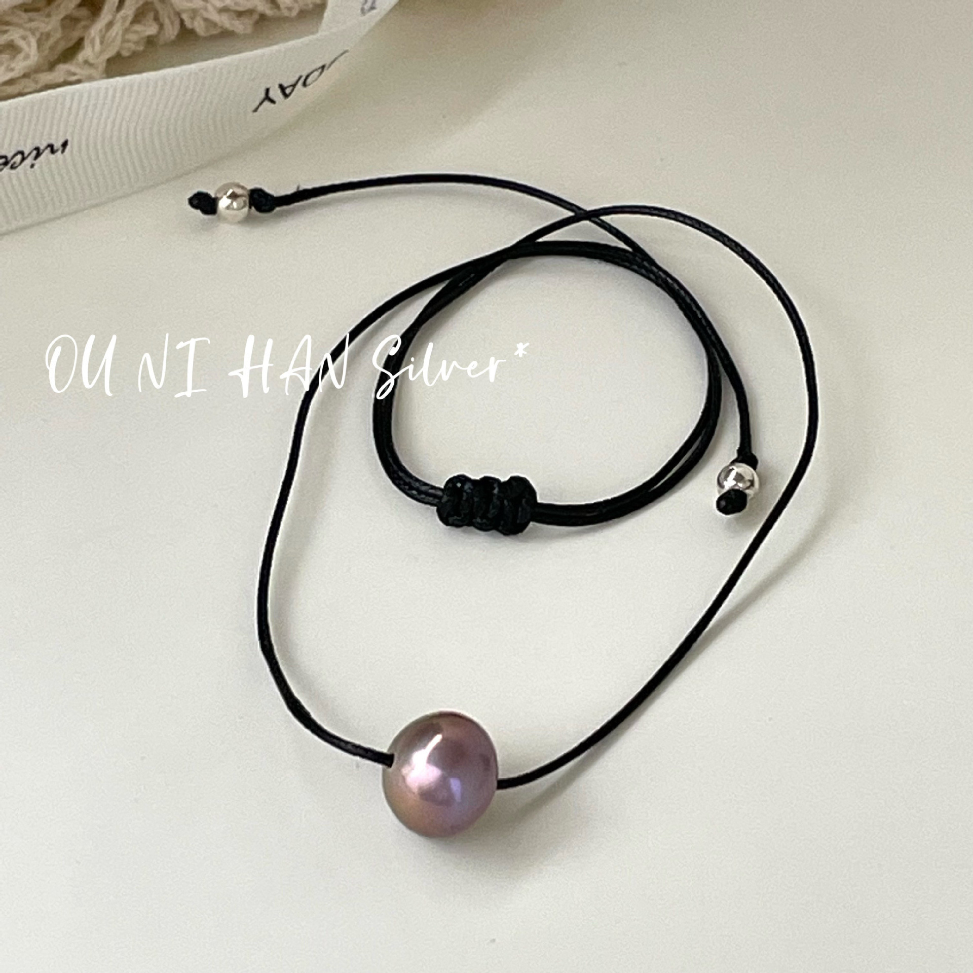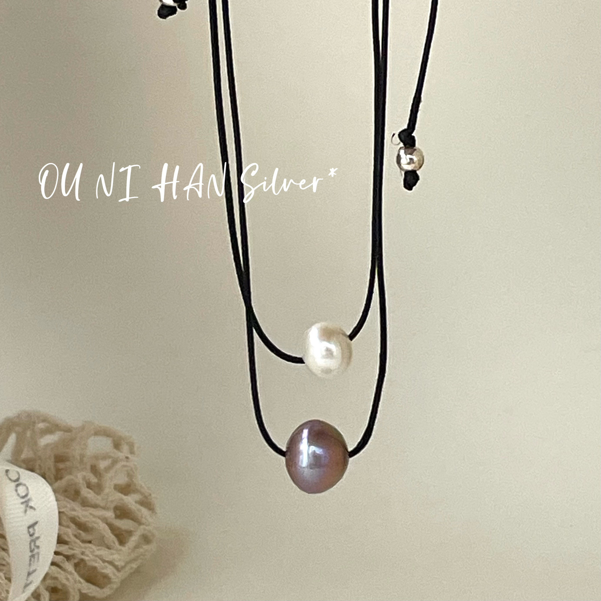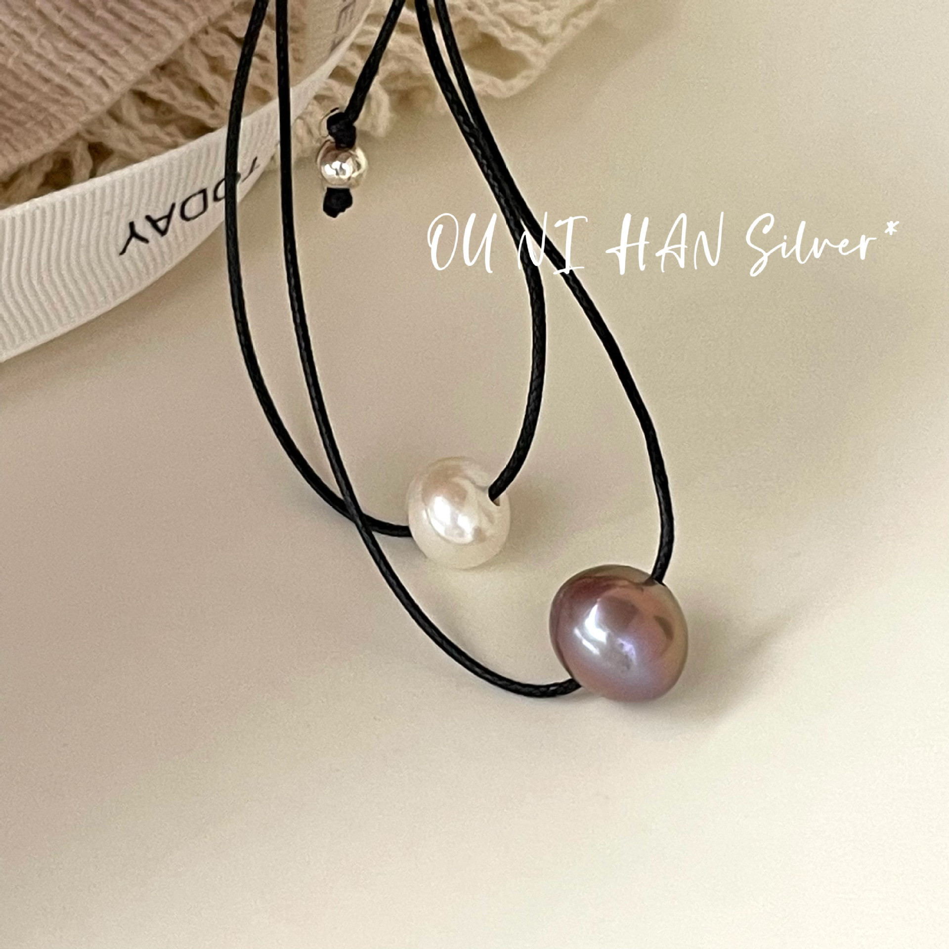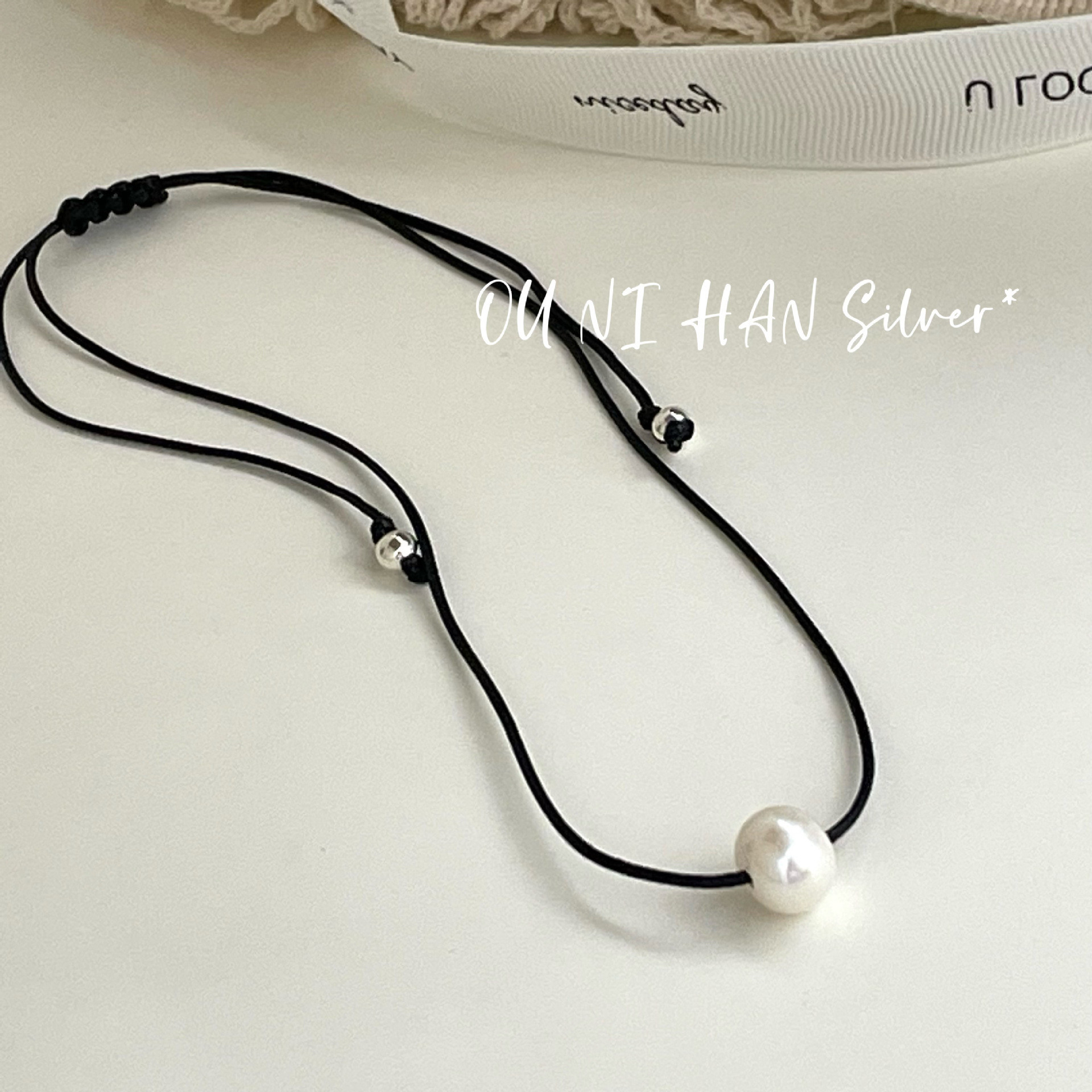 mapuce韩国黑色抽绳珍珠s925银时尚秋冬简约ins锁骨毛衣链项链