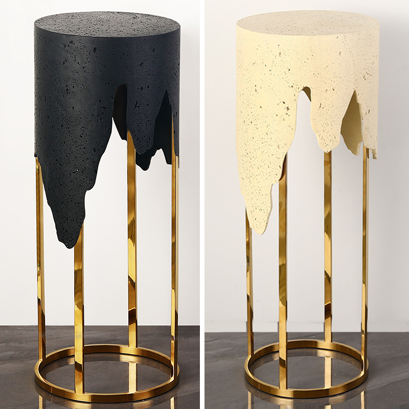 圆柱形底座石g材石墩基座客厅落地大理石柱摆件展示架洞石雕塑摆