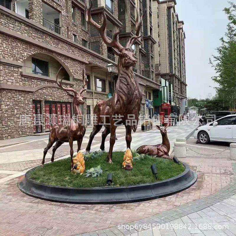 室外广场纯铜梅鹿摆件一对公园大鹿铜像母子鹿铸铜群鹿雕塑