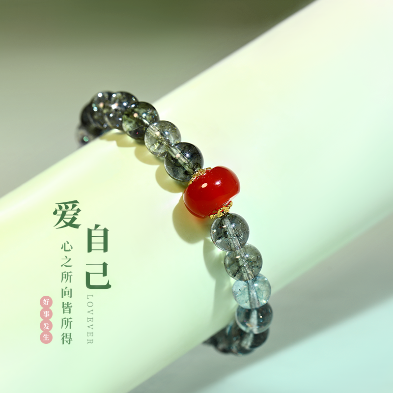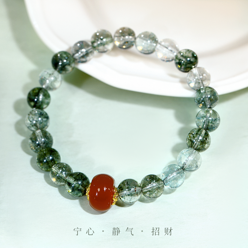 红玛瑙绿幽灵串珠水晶手链女款2026新款轻奢小众精致手串闺蜜手饰