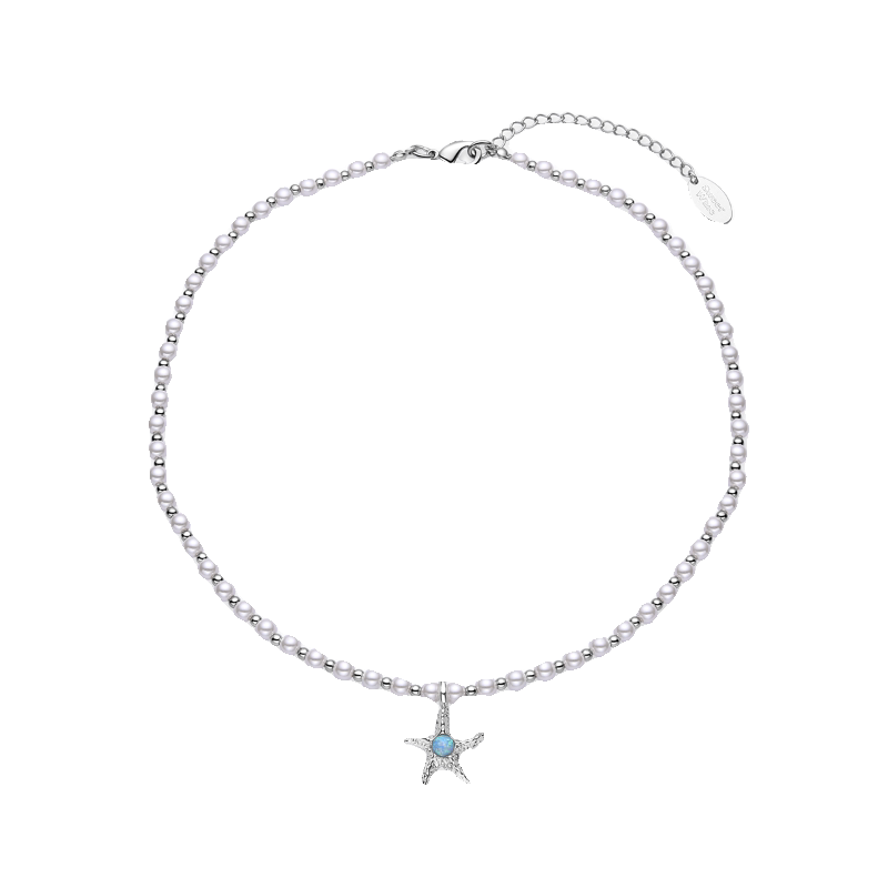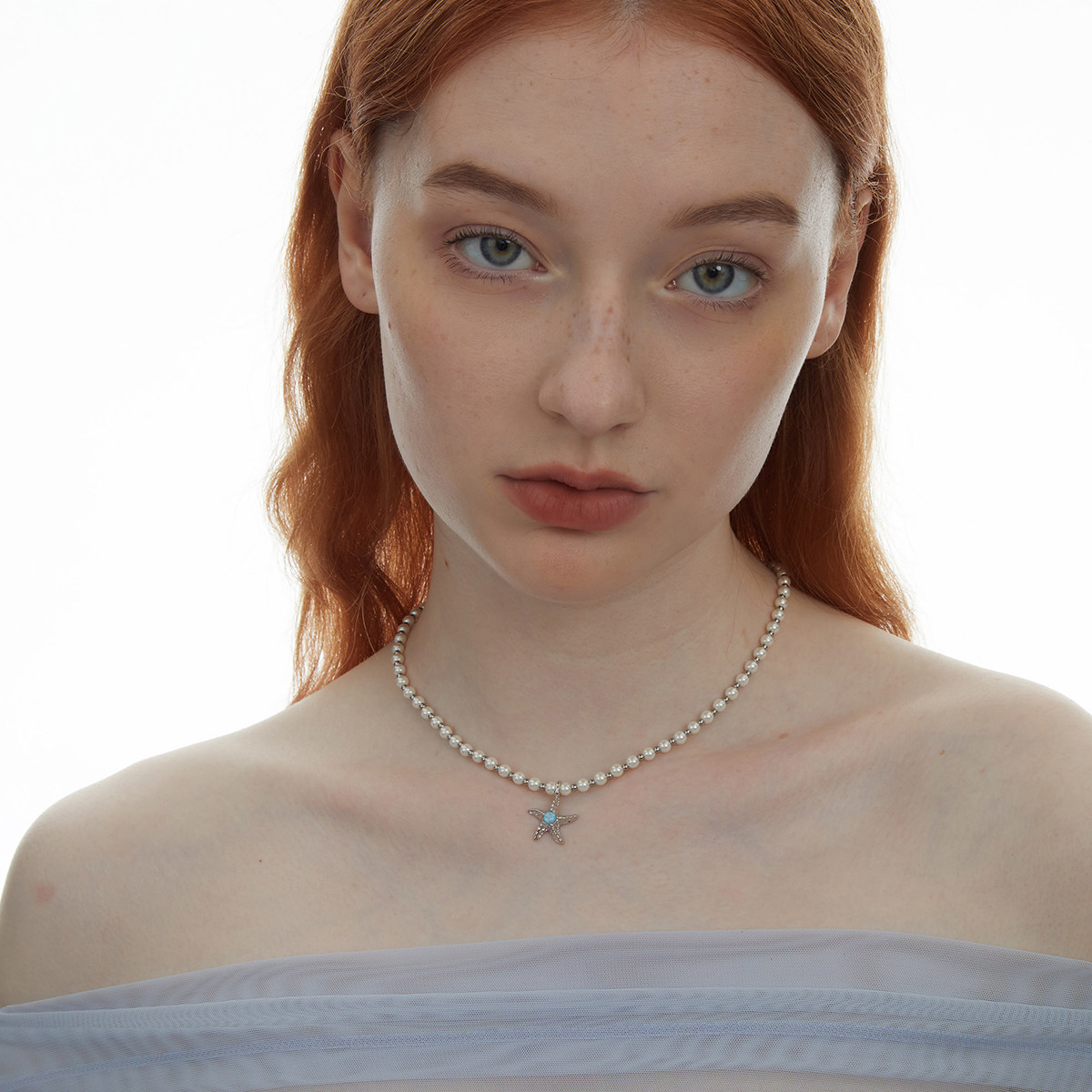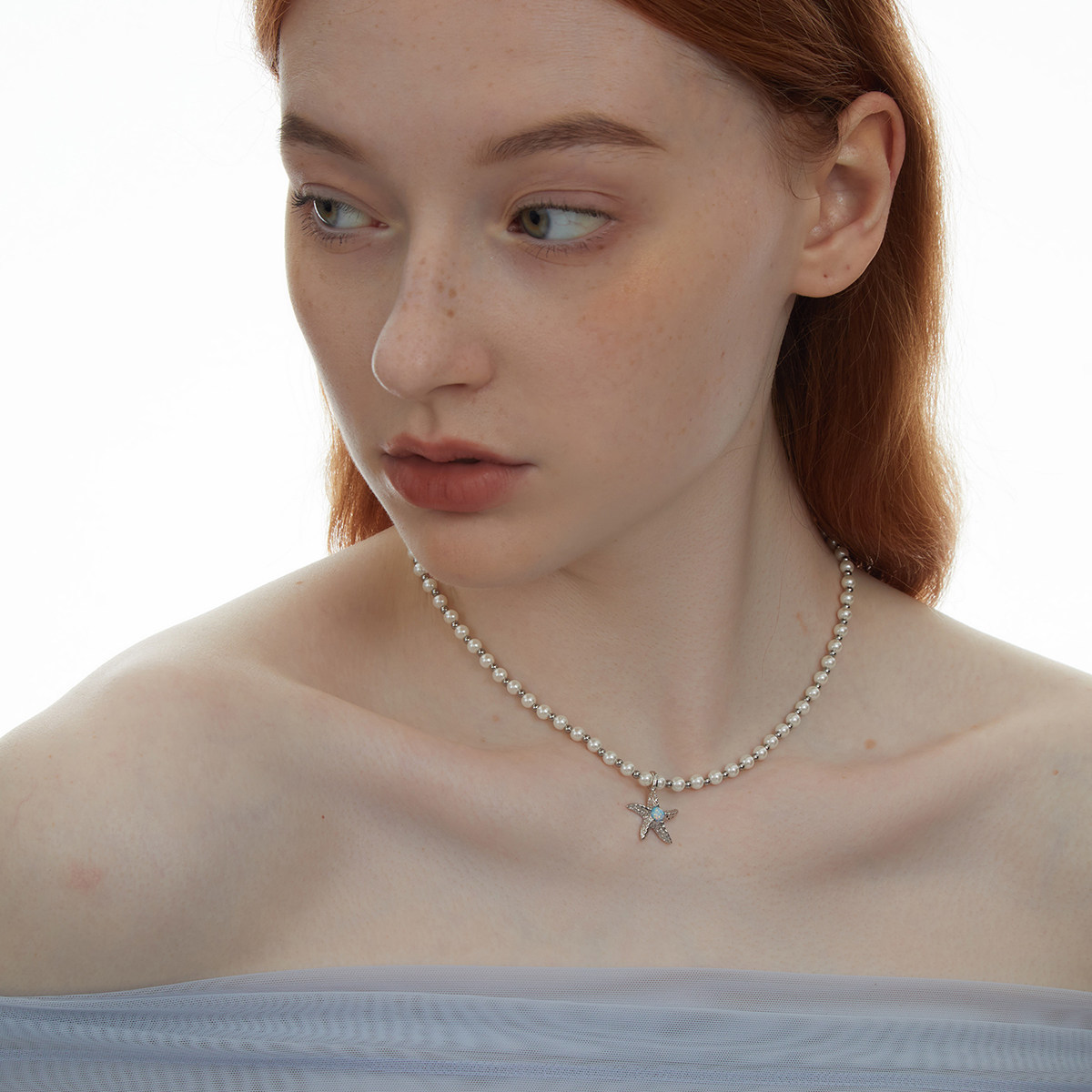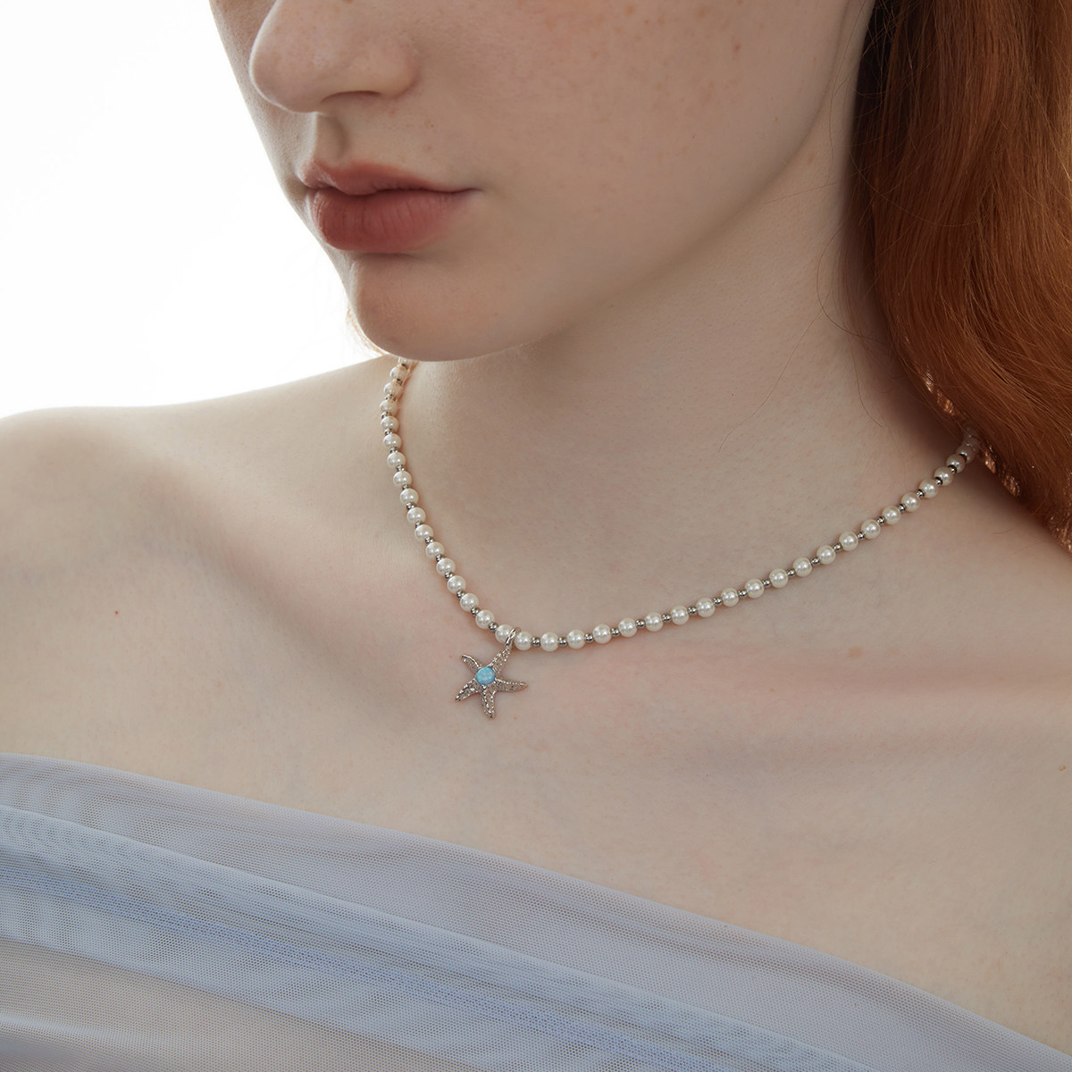 SWEET WINE 甜酒 【夏日海滩】蓝色欧泊石海星吊坠珍珠项链