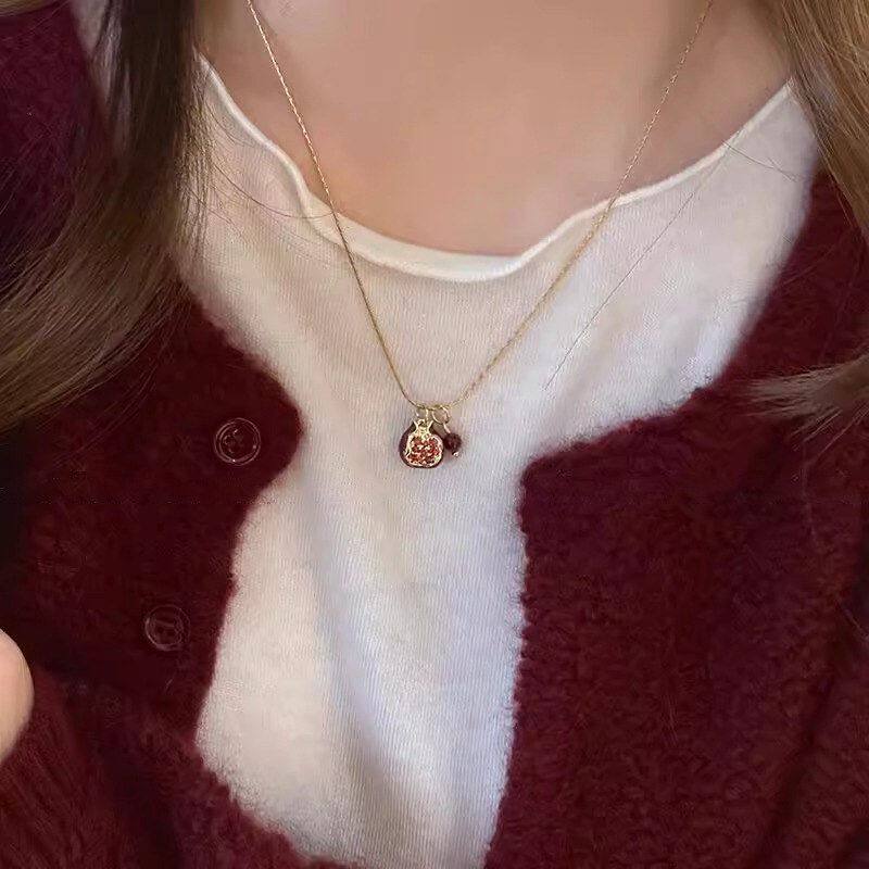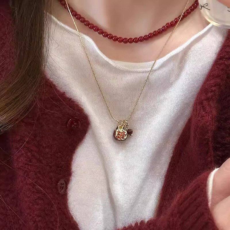 石榴熟了~喜庆红色项链女款叠戴锁骨链高级感轻奢小众配饰毛衣链