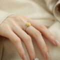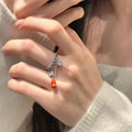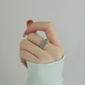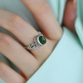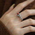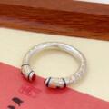 樱花925银古法浮雕实心素圈戒指女新中式复古小众精致开口食指环