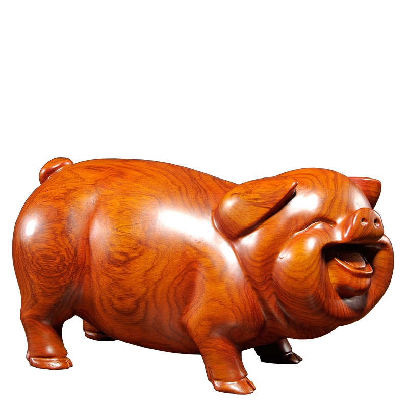 花梨木雕刻猪摆件红木雕刻十二生肖猪家居客厅书房桌面摆设工艺品