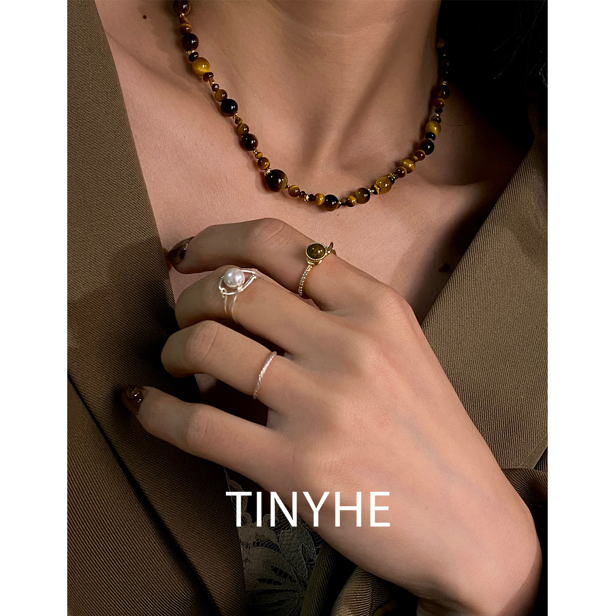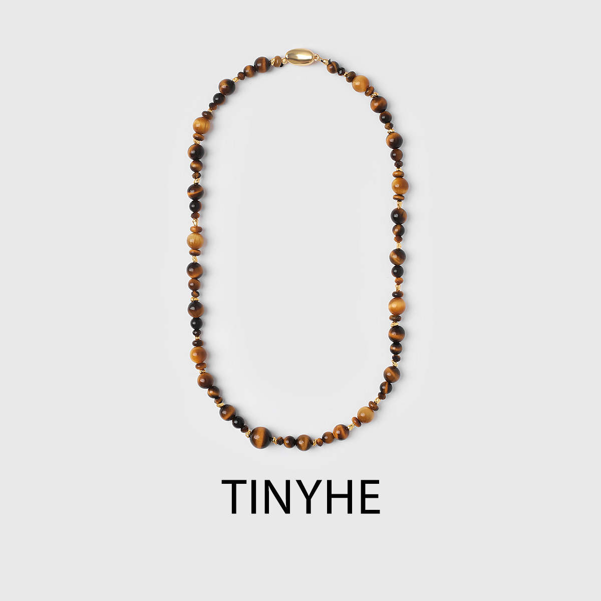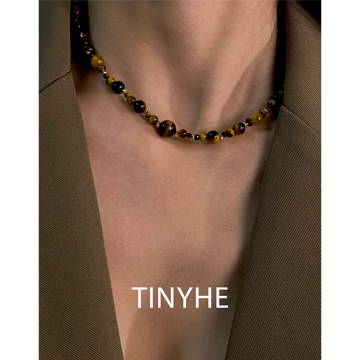 TINYHE米雪 天然黄虎眼石纯银项链女水晶锁骨链秋冬串珠颈链原创
