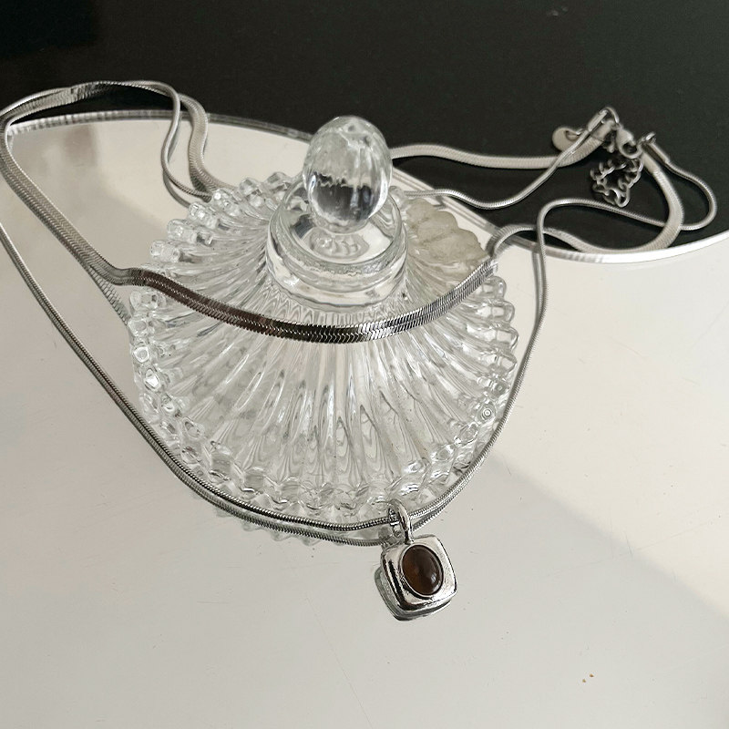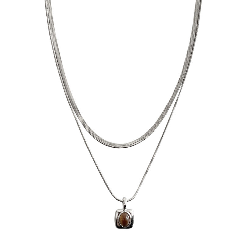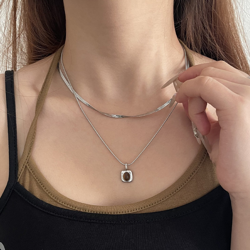 OUKECHUN方形吊坠项链女小众轻奢冷淡风ins嘻哈高级感双层锁骨链
